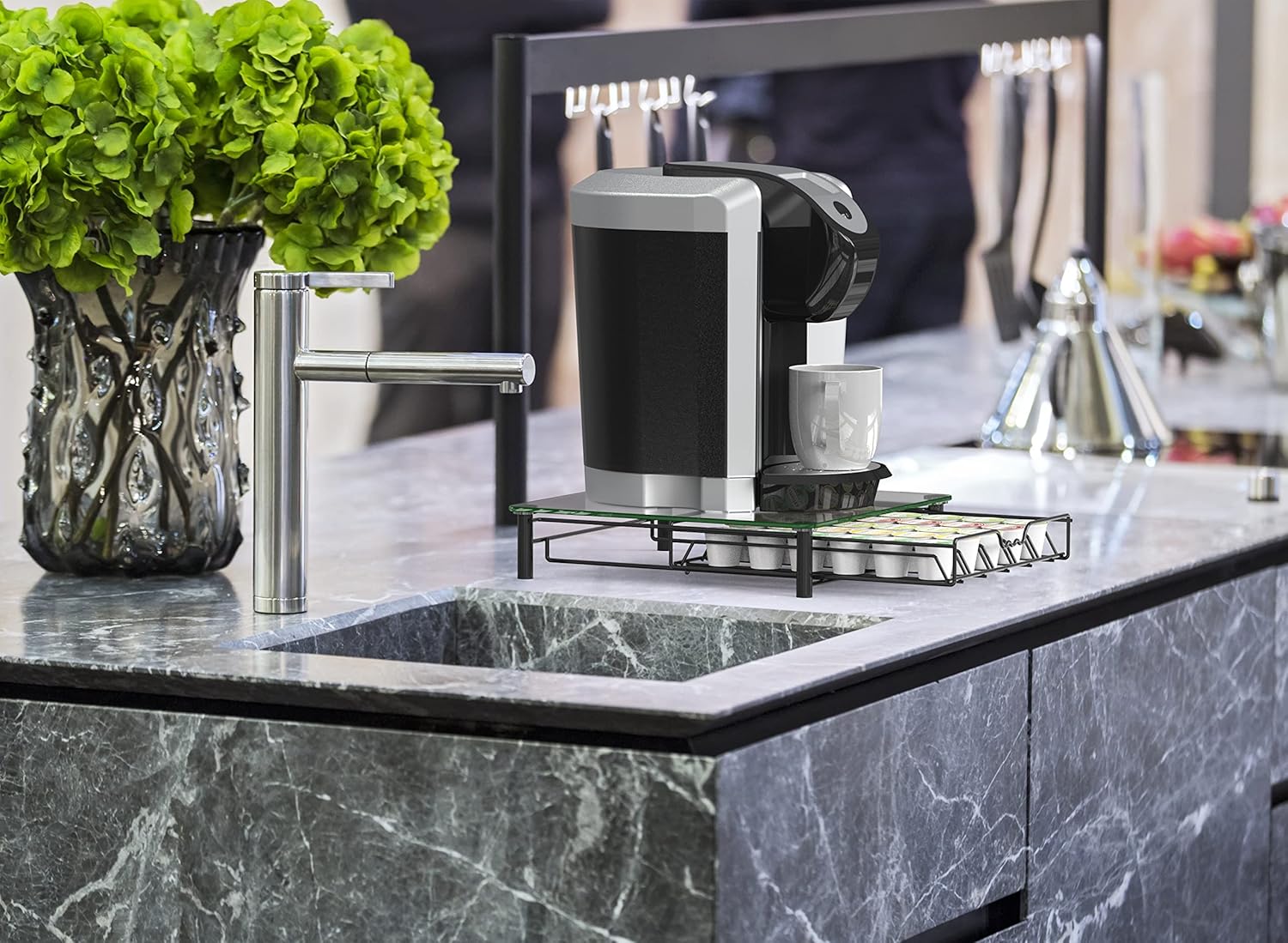 - [ Tempered Glass ] The tempered glass top offers a clear view of your coffee pods, allowing you to easily choose without needing to open the drawer.