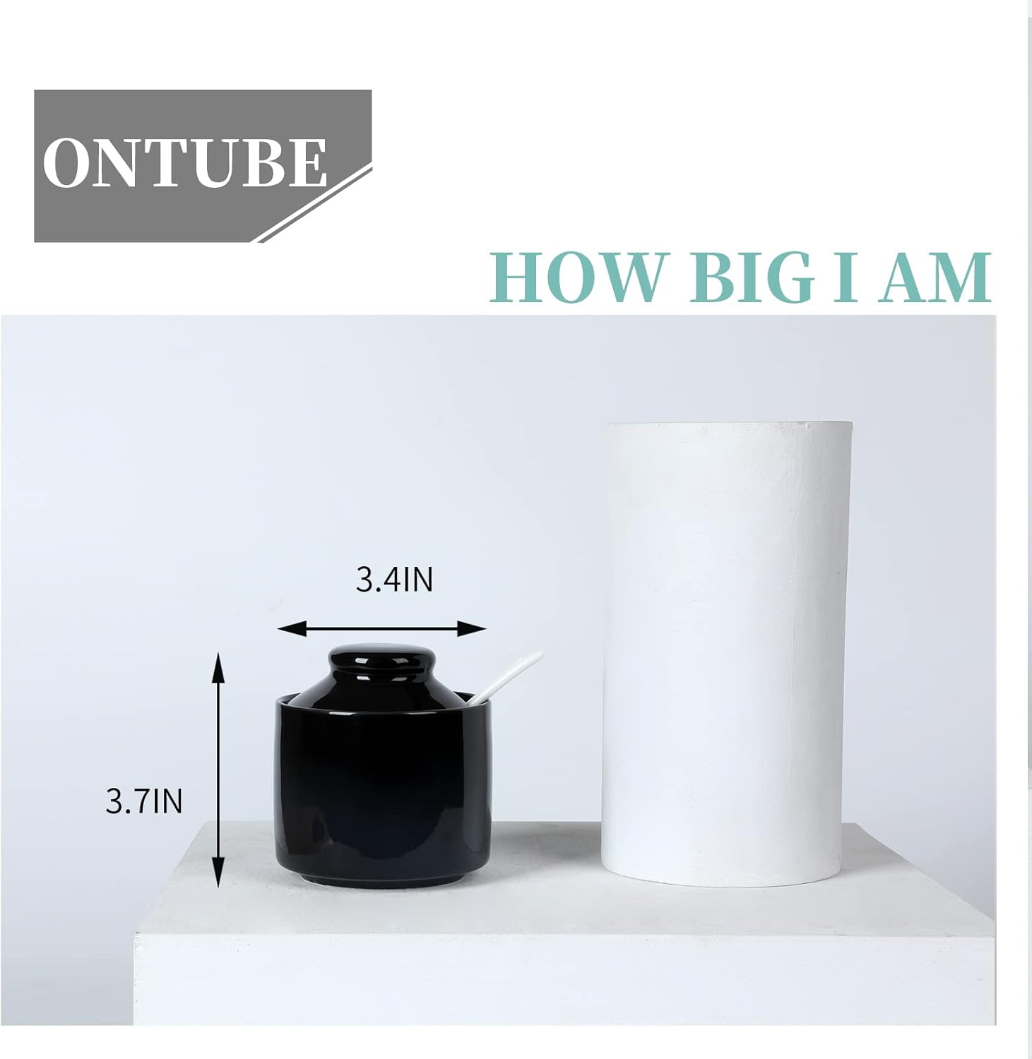 ONTUBE Ceramic Sugar Bowl with Lid and Spoon,Porcelain Seasoning Box Salt Bowl,8oz (Black)