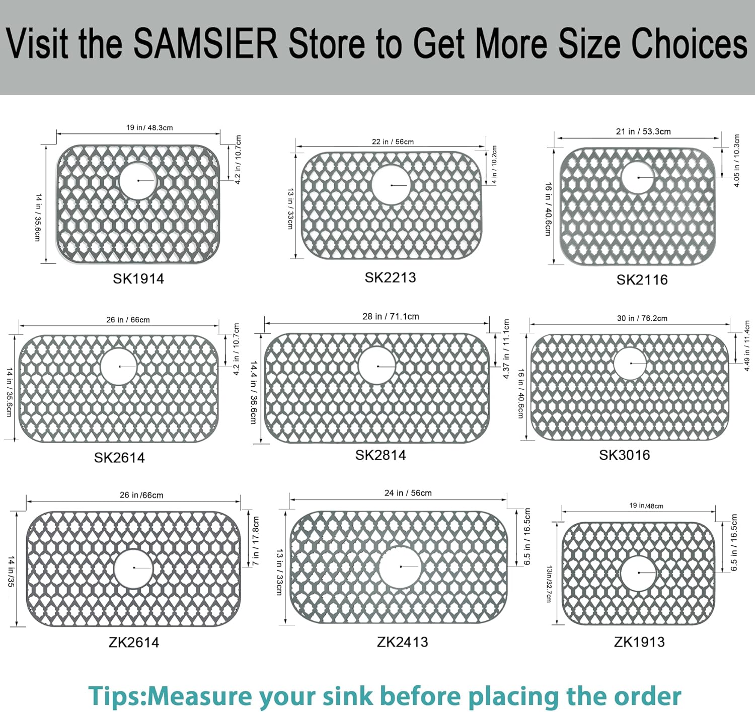 Sink Protectors for Kitchen Sink 13x11 &16x12 &19x14 &22x13 &24x13 &26x14 &28x14 &30x16, Large Silicone Sink Mats Grid for Bottom of Farmhouse Sink (19”x13”, Center Drain)