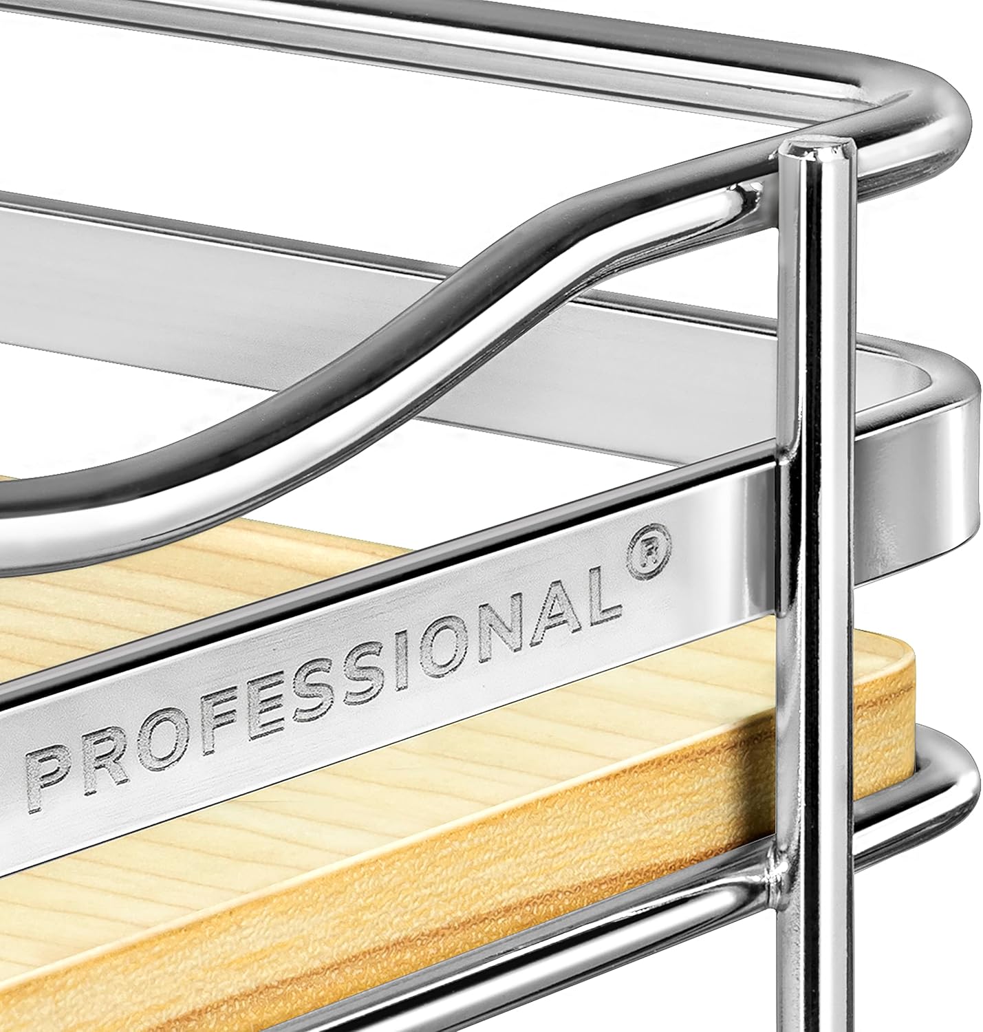 LYNK PROFESSIONAL® Élite™ Pull Out Spice Rack Organizer for Inside Kitchen Cabinets - 10-1/4 inch Wide - Slide Out Drawer – Wood/Chrome Sliding Spice Cabinet Organization Shelf Racks - 2 Tier