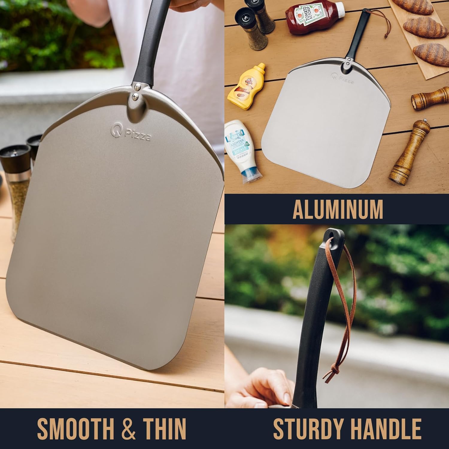 - 【BUILT TO LAST FOR PIZZA OVENS】 The sturdy pizza peel is suitable for ooni pizza oven, big horn oven, ninja grill oven and more. The aluminum pizza peel is not only resistant to high temperatures but also wear resistant. Lighter than comparable materials, but with incredible strength and durability.