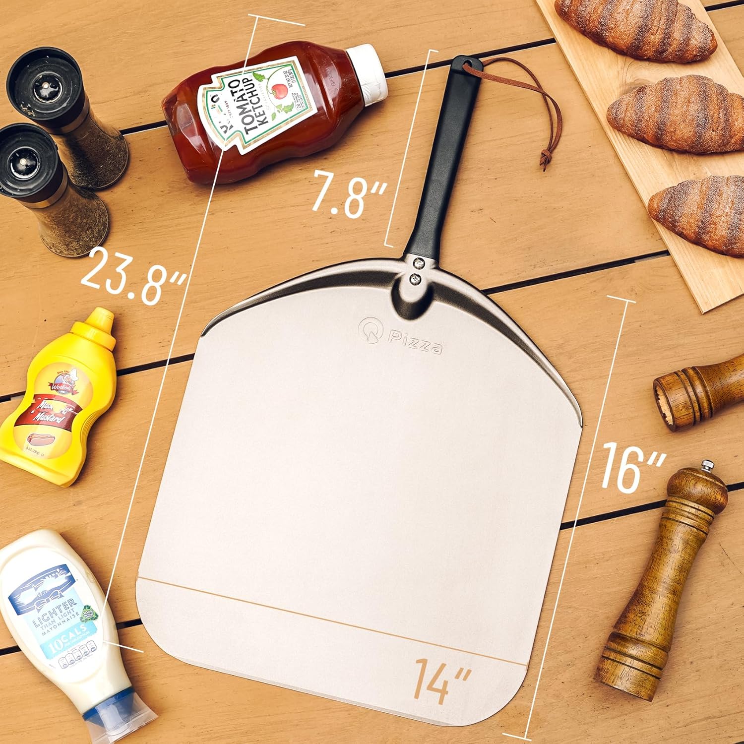 Q Pizza Aluminium Pizza Peel 14 inch, Extra Large Metal Pizza Turning Paddle, Non-stick Pizza Spatula for ooni Grill Oven Baking Bread Pastry Dough Pie Cake, PT205