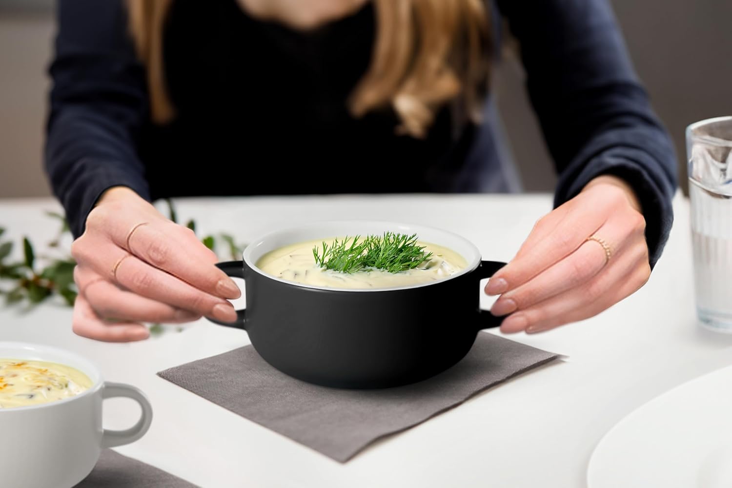 Kook Soup Crocks, Ceramic Bowls, Broil, Oven, Microwave and Dishwasher Safe, with Handles, For Casserole, Pasta, Cereal, 18 oz, Set of 4 (Black)