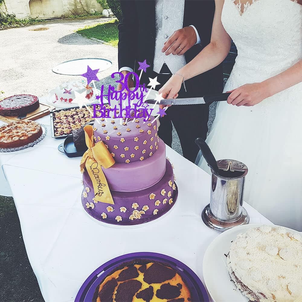 Glittery 30th Happy Birthday Cake Topper with Star,Personalised 30 Birthday Cake Toppers Party Decorations Party Supplies for Men Women Purple Silver
