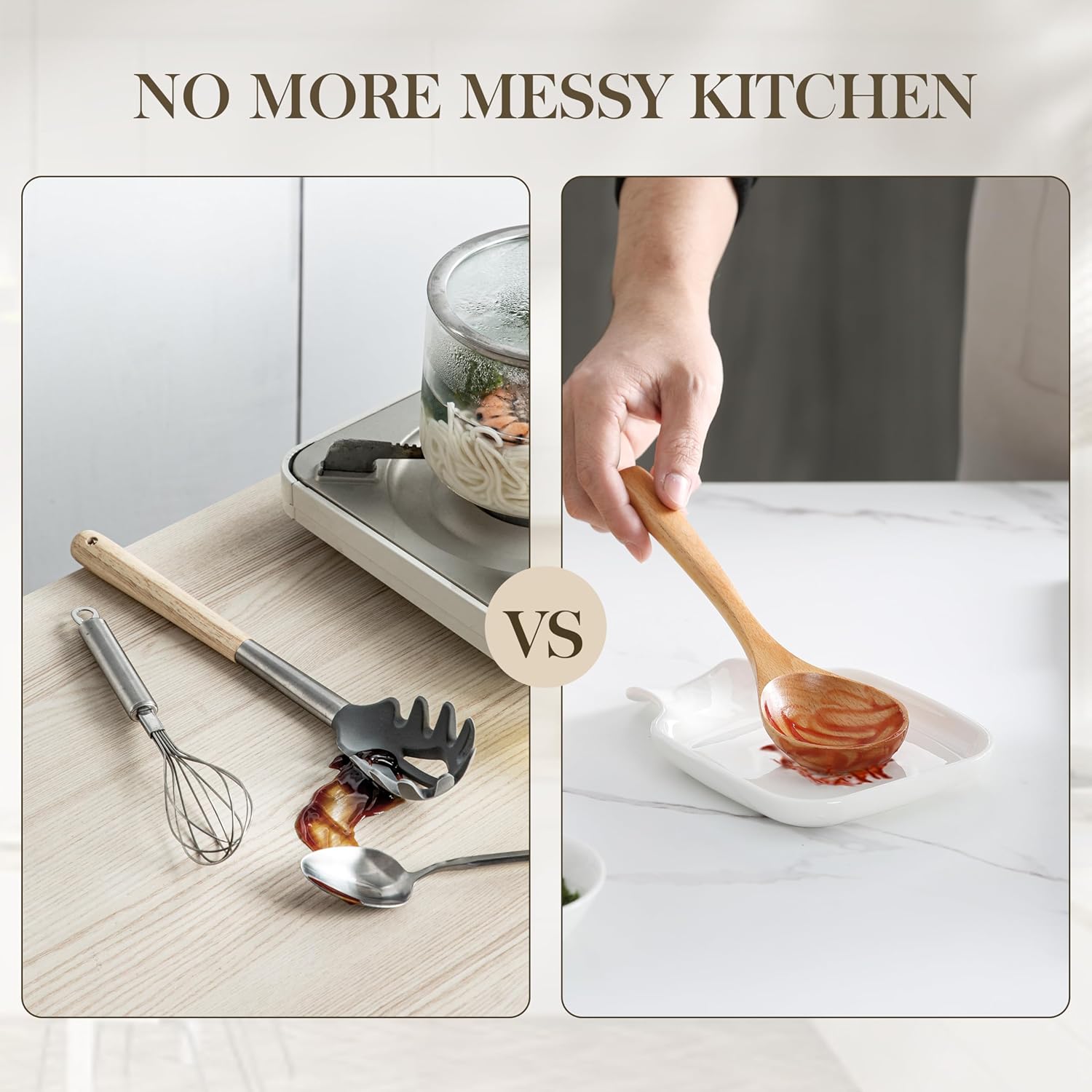 - 【FUNCTIONAL】Lightweight, it provides designated placement for cookware, preventing mess and overflow, maintaining countertop cleanliness while cooking or baking, guarding against cross-contamination when using various utensils. Additionally, the spoon rest serves as a decorative piece, enhancing the visual appeal of the kitchen.