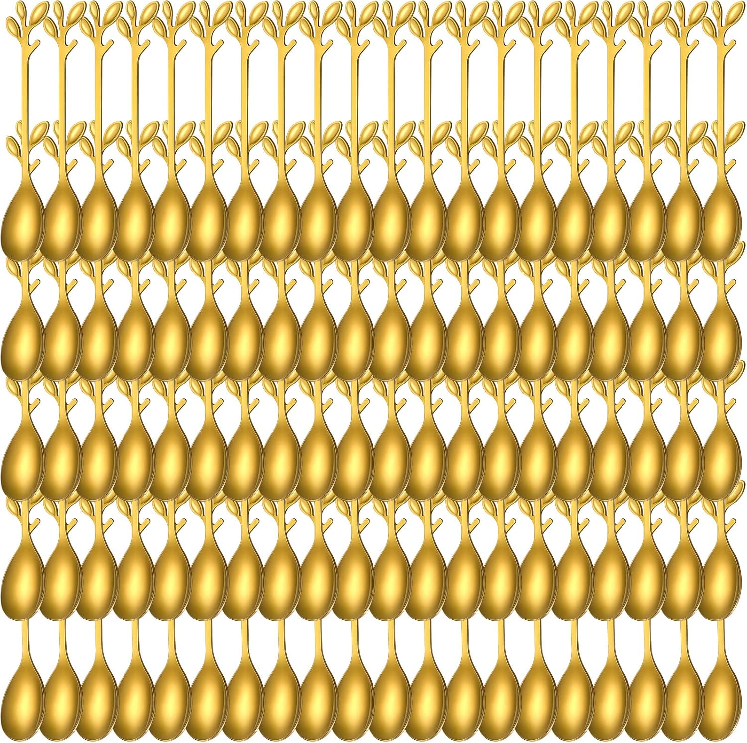 100 Pcs Demitasse Espresso Spoons Stainless Steel Bulk, 4.33'' Small Mini Coffee Tasting Dessert Spoons for Kitchen Dessert, Tea, Appetizer, 1.18'' Wide(Leave,Gold)