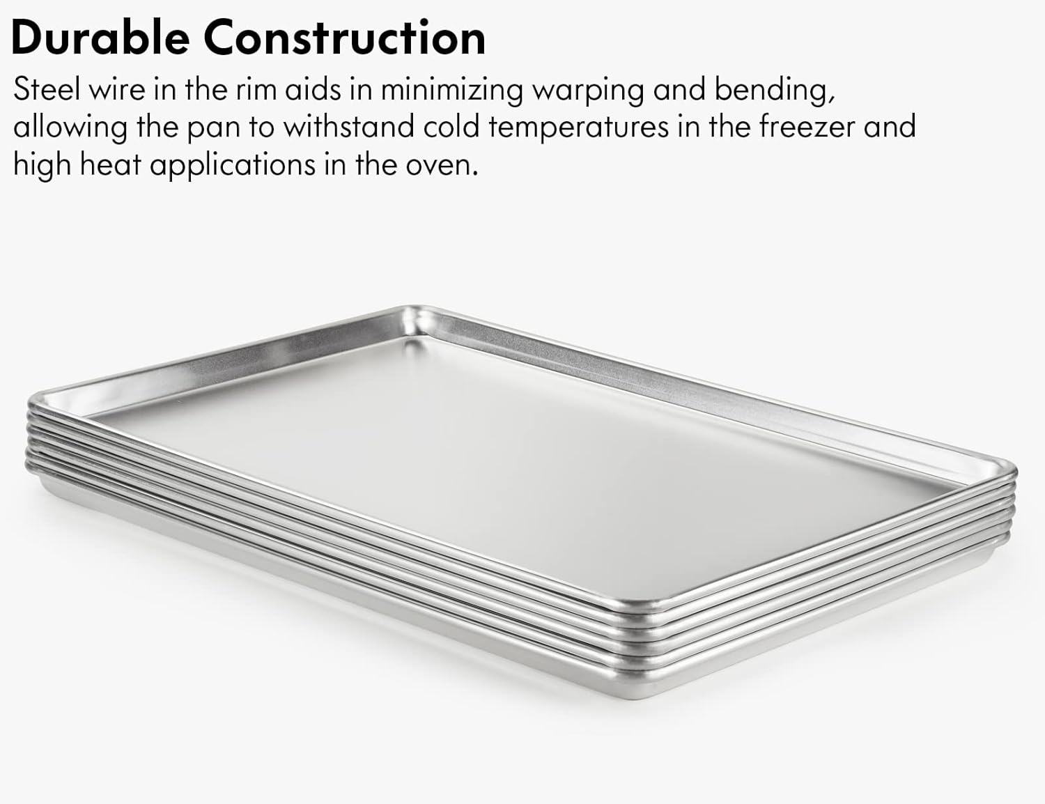 CURTA 6 Pack Aluminum Sheet Pan, NSF Listed Full Size 26 x 18 inch Commercial Bakery Cake Bun Pan, Baking Tray