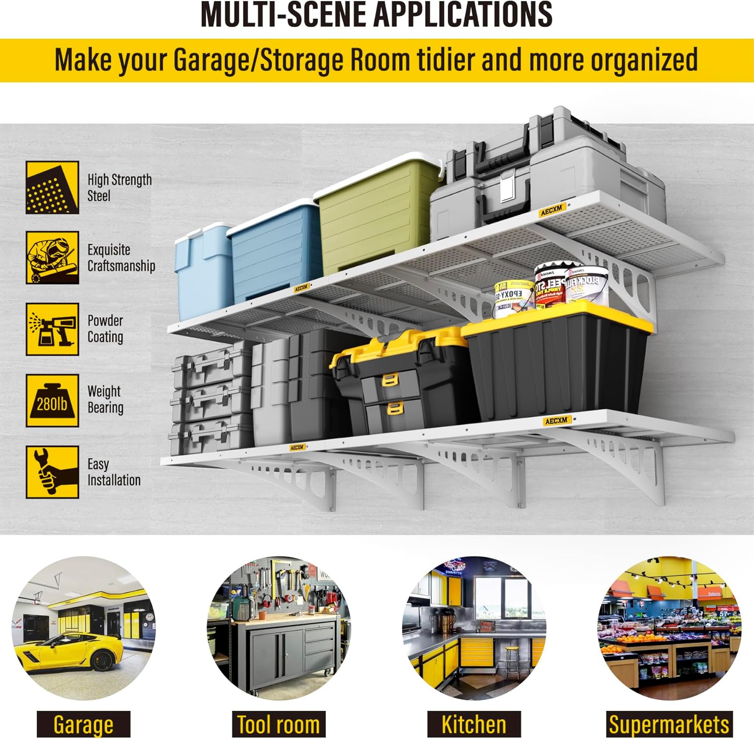 - Rigorous Load Testing: When properly installed on wood studs, the garage wall shelf total weight capacity reaches at least 1120lbs, with each individual panel supporting to 280lbs with no bending or warping