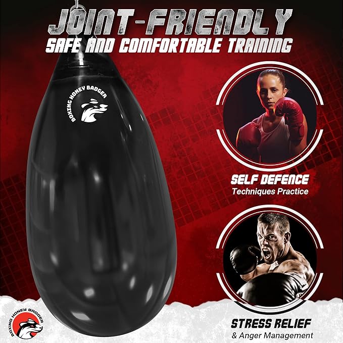 - 【Both Indoor and Outdoor】- This Boxing Honey Badger water punching bag is made of high grade thick vinyl means you can hang it both indoor and outdoor. The bag is both UV resistant and waterproof. You don't need to worry the Sunshine or rain may damage your bag. Of course, you can use it for indoor perfectly as well.