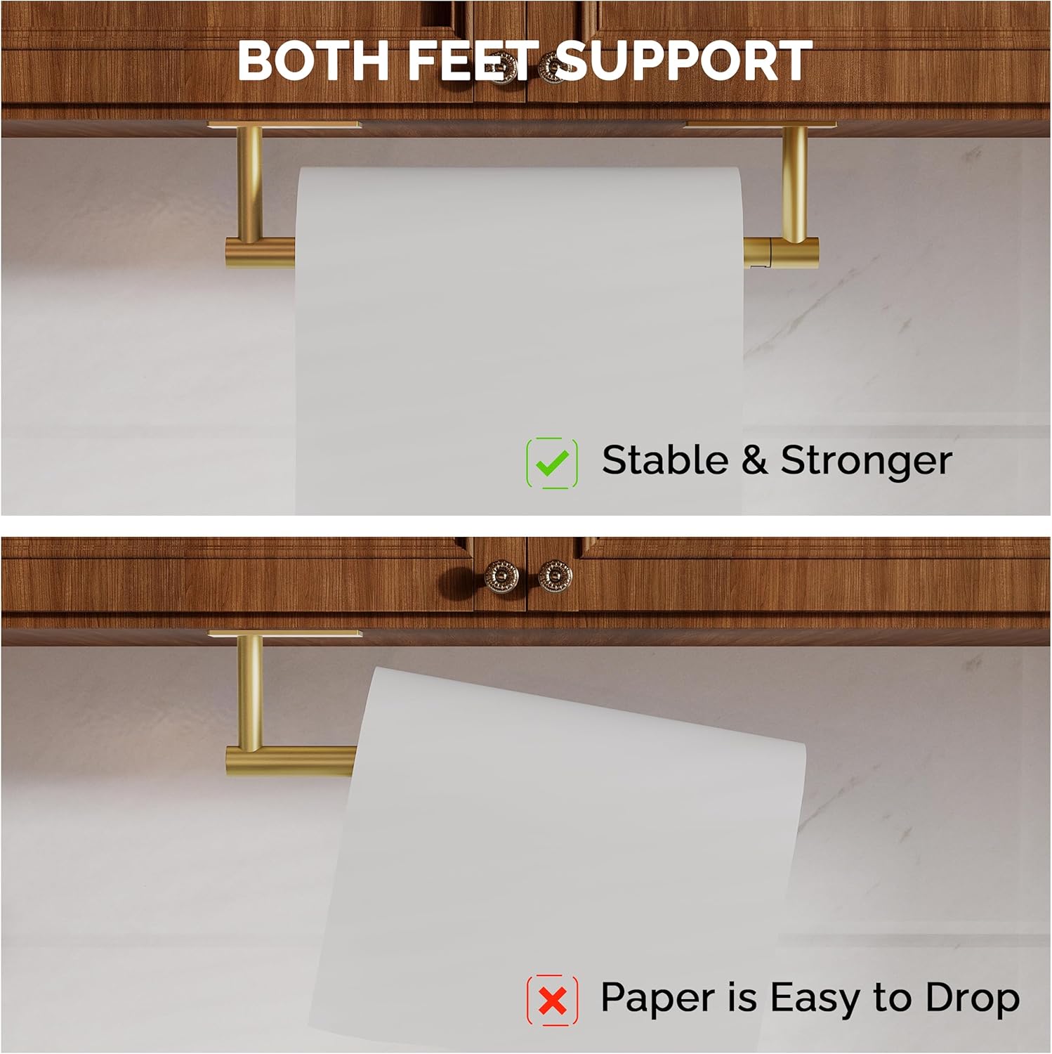 - [Double-Post Pivoting] The double-post pivoting design makes wall mount paper towel holder simple to replace the paper towels. The paper towel holder wall mount's revolving buckle successfully keeps the kitchen towel from coming off, and the symmetrical design adds aesthetic value to your kitchen