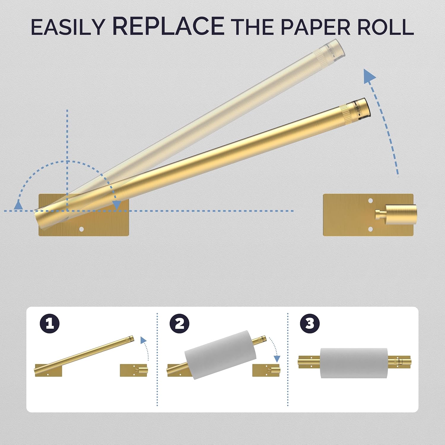 - [360°Rotating Buckle Design] The paper towel holder wall mount's 360° rotatable buckle design securely holds it in place and prevents the tissue roll from falling off when torn