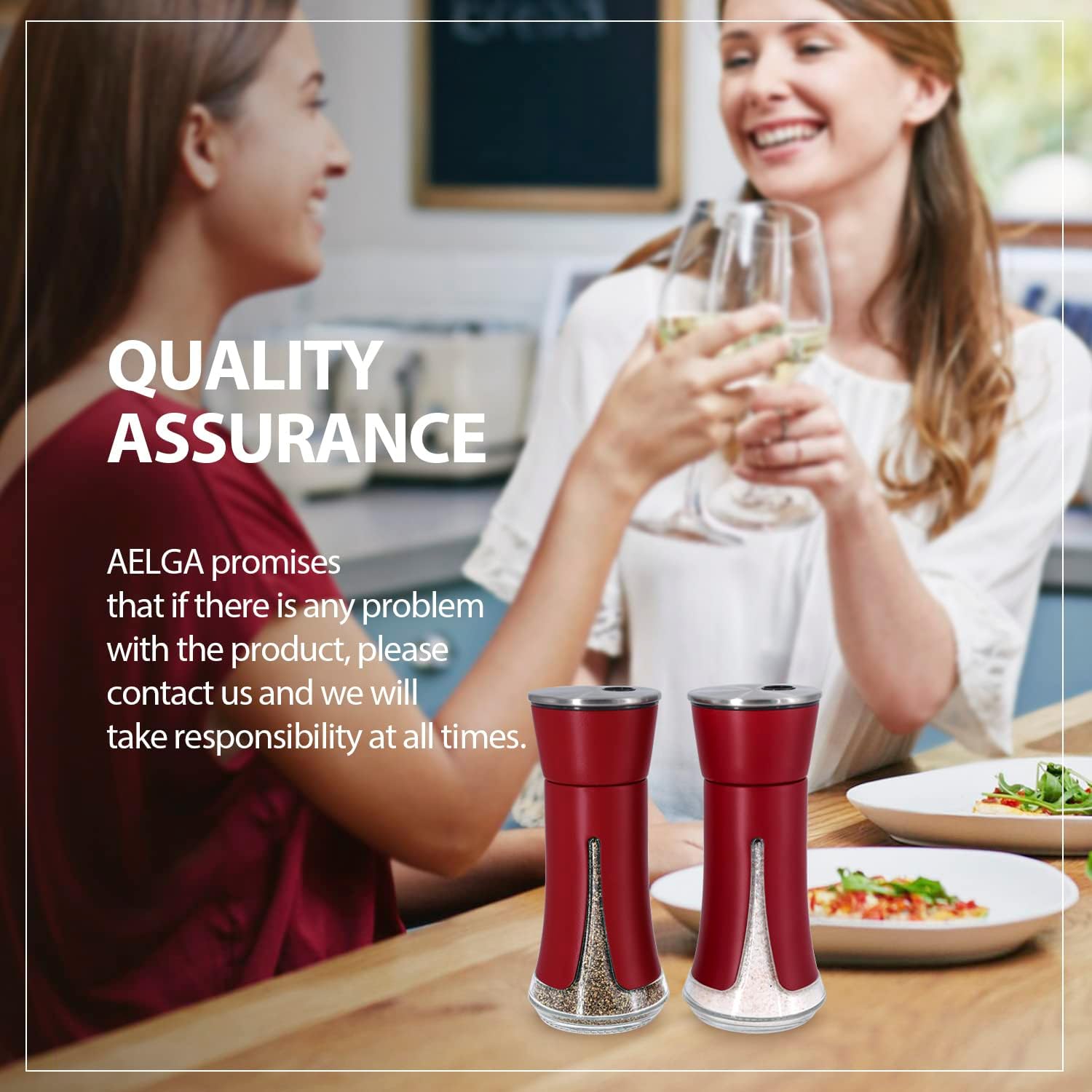 Red Salt and Pepper Shakers by Aelga, Salt Shaker with Adjustable Pour Holes, Red Kitchen Accessories, Decor for Kitchen,Restaurants,Camp,BBQ