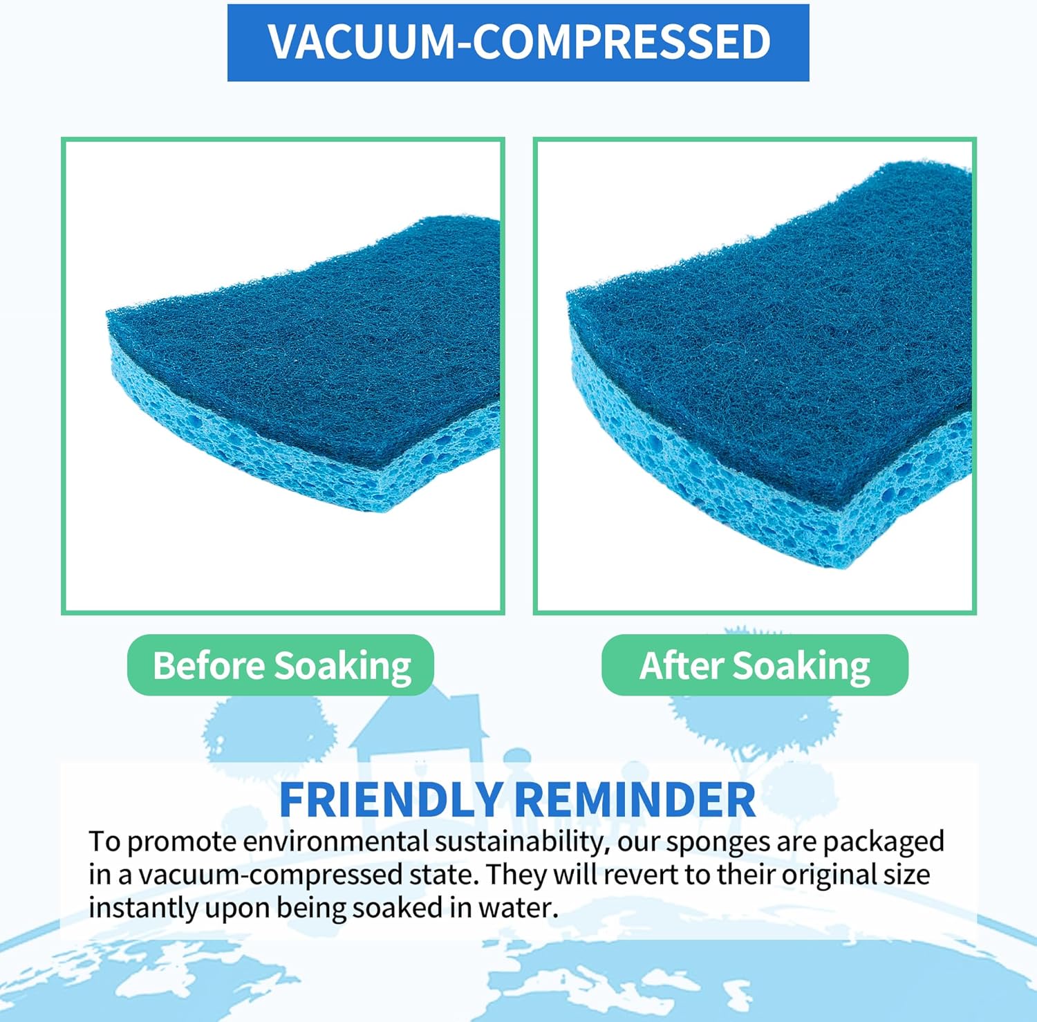 HOMERHYME Non-Scratch Cellulose Scrub Sponges 24 Pack, Kitchen Sponge with Double-Side & Ergonomic Design. Sturdy Sponge for Dishes, Coated Cookware, Sink, Countertops.