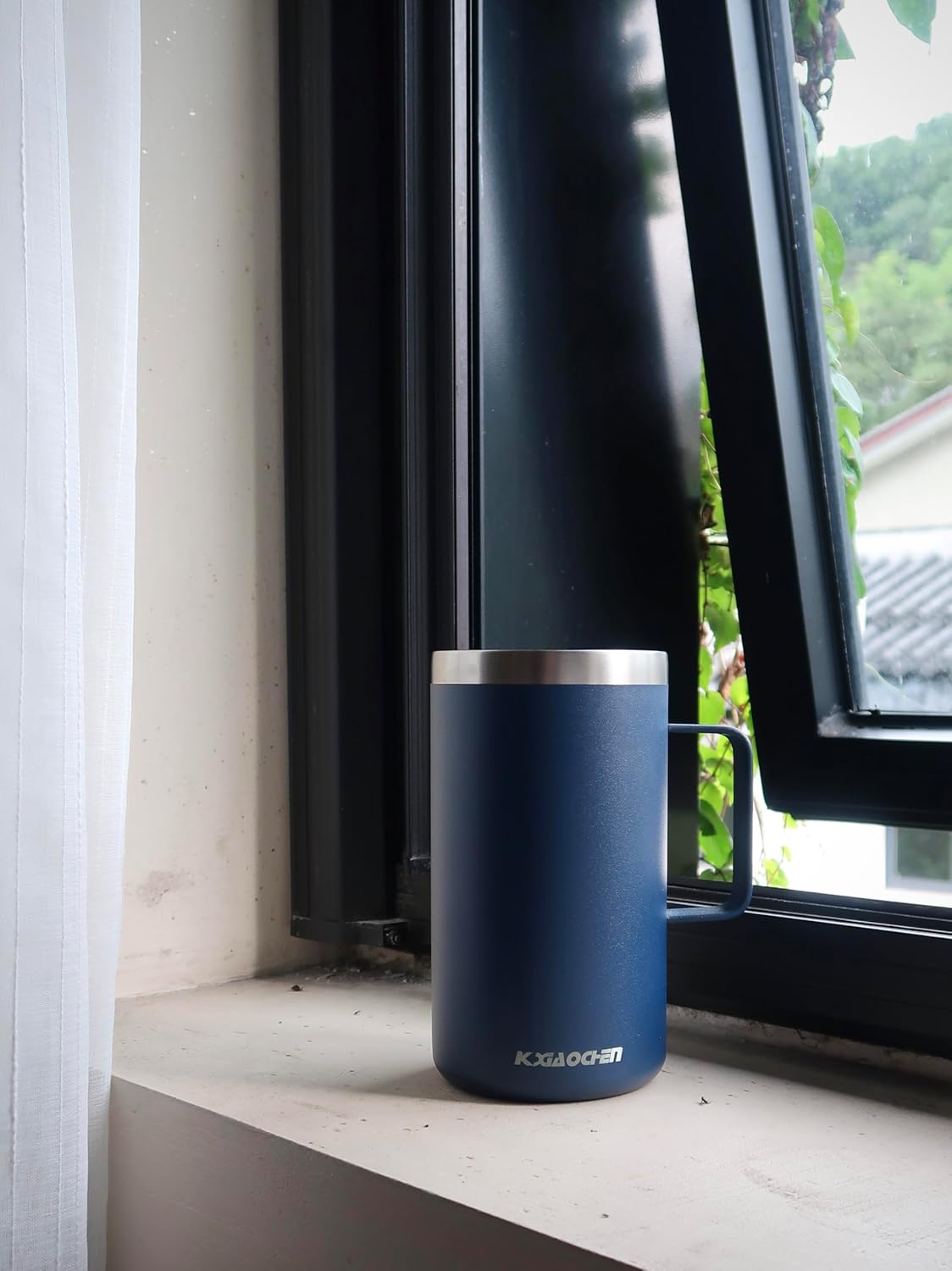 - INSULATED COFFEE MUG WITH HANDLE: 20oz coffee cup is large enough for heavy coffee lover at work, and also can be in beer gardens, home brews and the party. Insulated coffee mug with lid designed to keep your favorite hot, cold and carbonated beverages at the perfect temperature on the go.