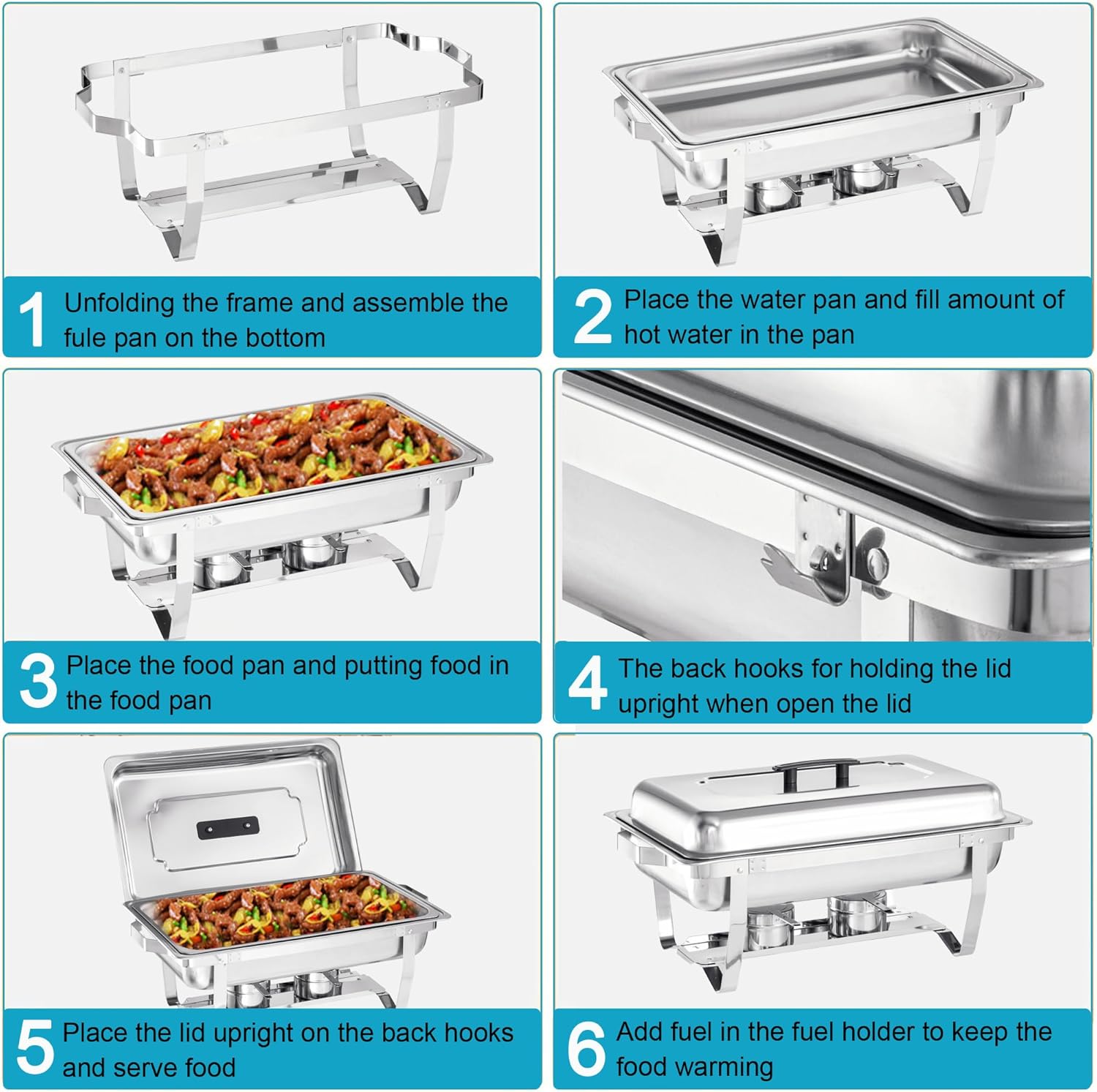 - 【SAVE SPACE 50% 】 - Stack-able design ensures easy transportation. It allows you to save up to 50% space.which is appropriate for providing heat to food and hold the trays stably. It can be folded down to help you with easy storage and maintenance.Each chafer features a highly-polished mirror finish that will shimmer in the ambient lighting of your venue.