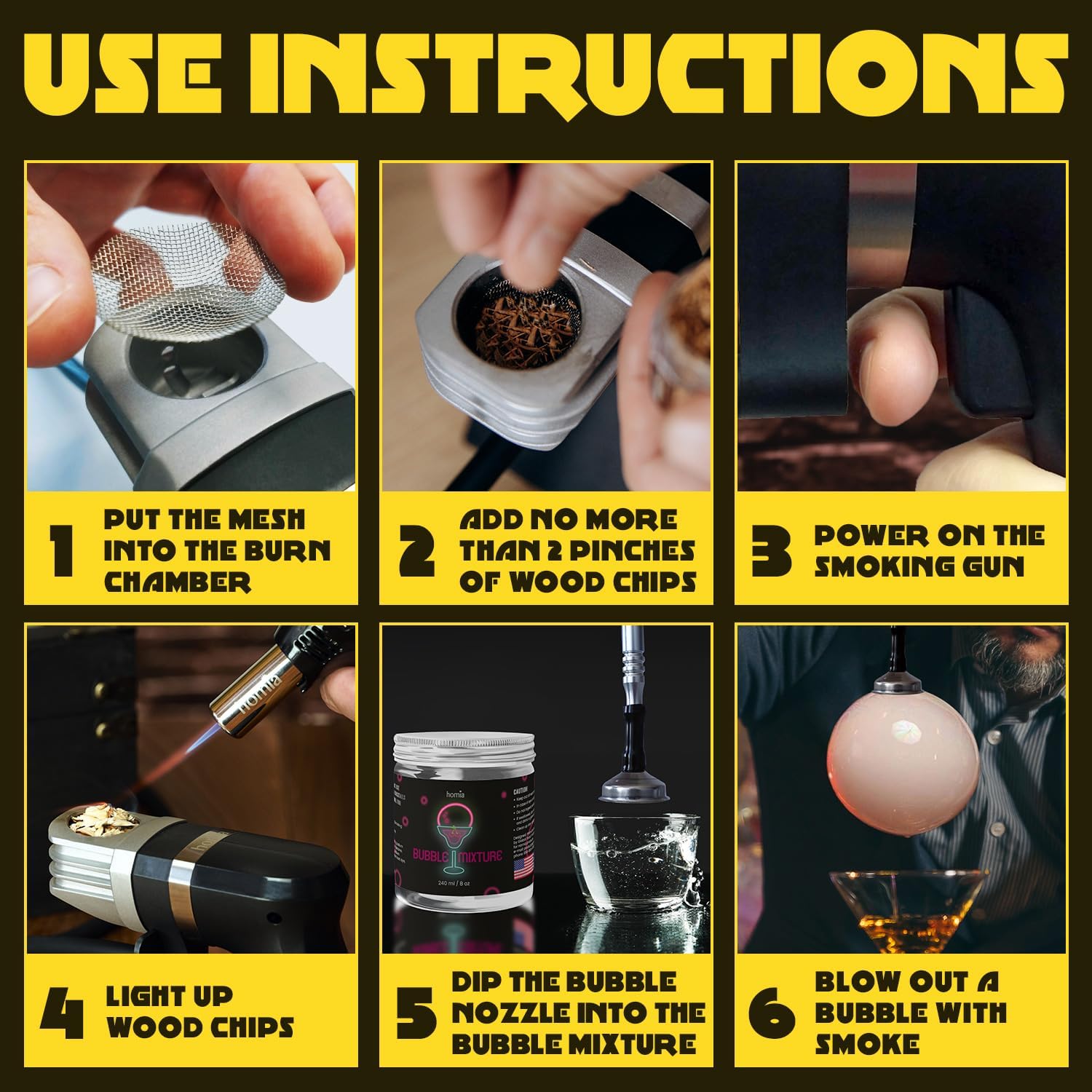 - PROUDLY MADE IN USA: The company is the industry leader in kitchen appliances, including smoking guns, drink smokers, bubble mixture, domes for smoking food or beverages, and other bar accessories. We are always here around you to resolve any arisen issue or answer any question you may have.