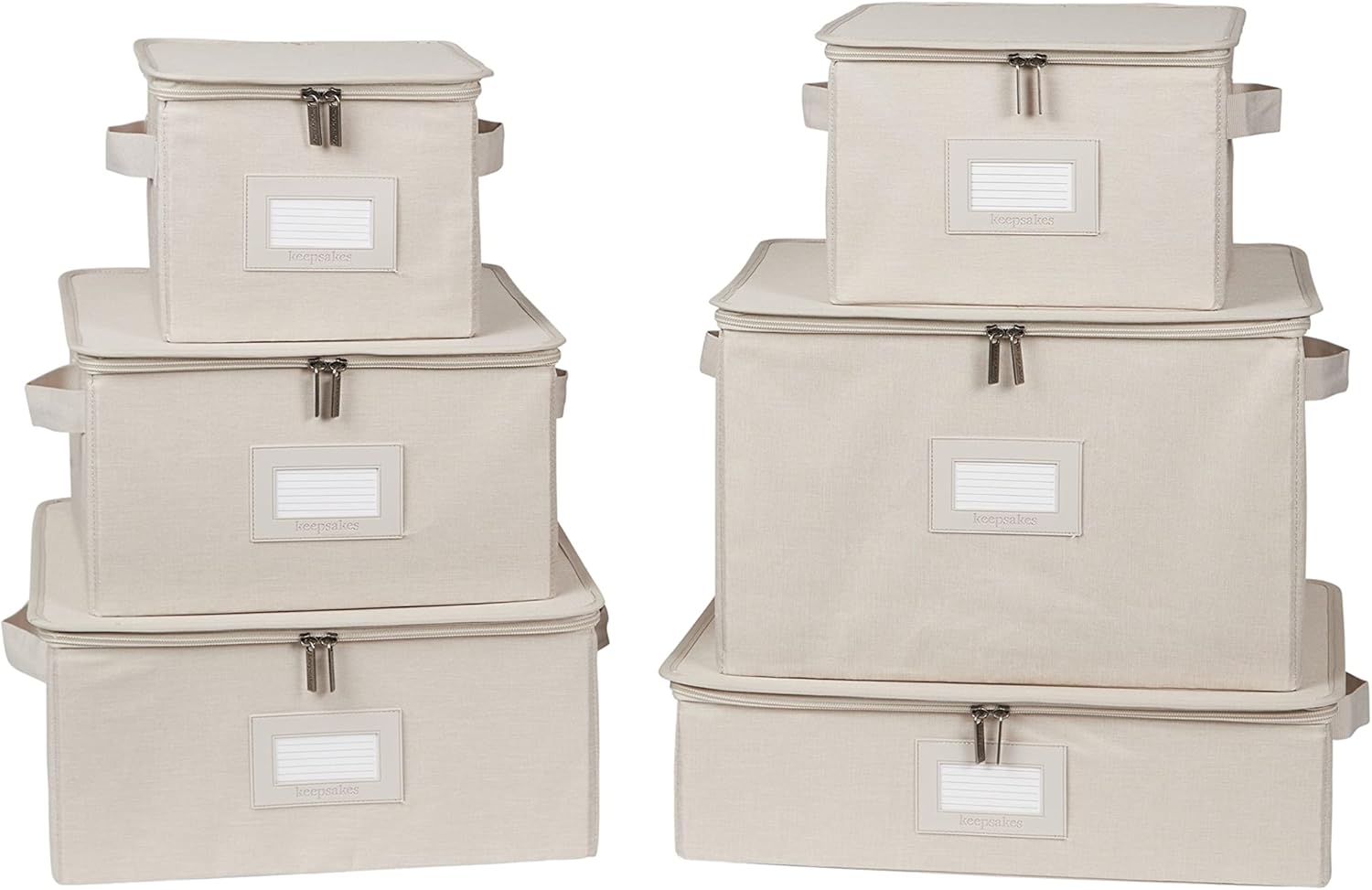 Covermates Keepsakes Dish Storage Box - Stackable, Reinforced Handles, China Storage, Beige Heather