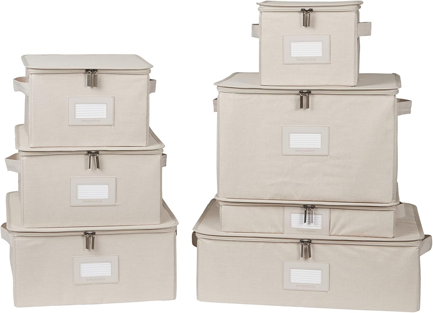 Covermates Keepsakes Dish Storage Box - Stackable, Reinforced Handles, China Storage, Beige Heather