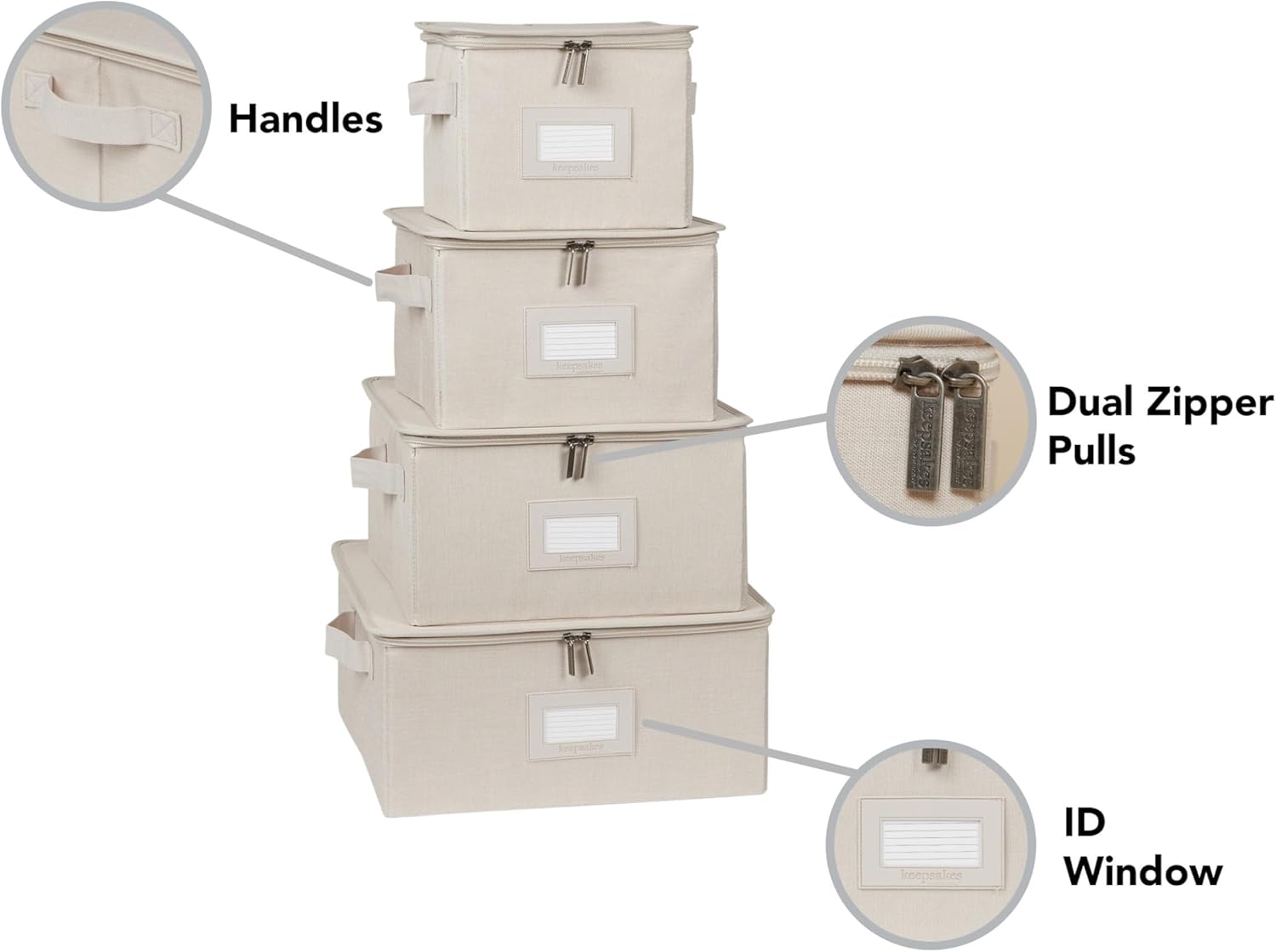 Covermates Keepsakes Dish Storage Box - Stackable, Reinforced Handles, China Storage, Beige Heather