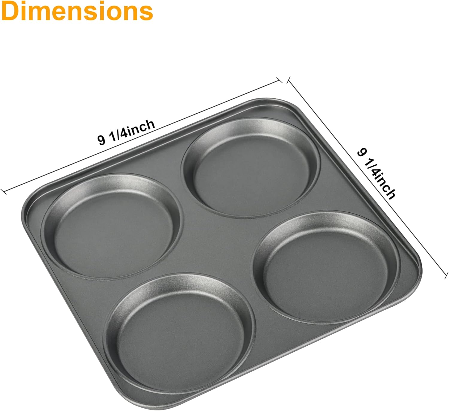Tiawudi Muffin Top Pan, 4-Cup Hamburger Bun Pan, Large Whoopie Pies Pan, Non-Stick Bakeware for Eggs, Cornbread, Small Cake Layers and Drop Cookies, Set of 3