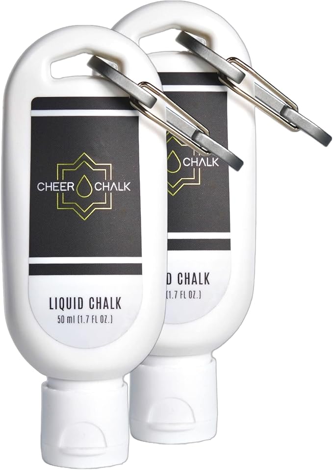 Liquid Chalk - Chalk for Elite Cheerleading - Chalk for Stunting - Chalk for Gymnastics - 50ml Bottle with Carabiner - 50 Practices Per Bottle - Maximum Grip for Safer Stunting
