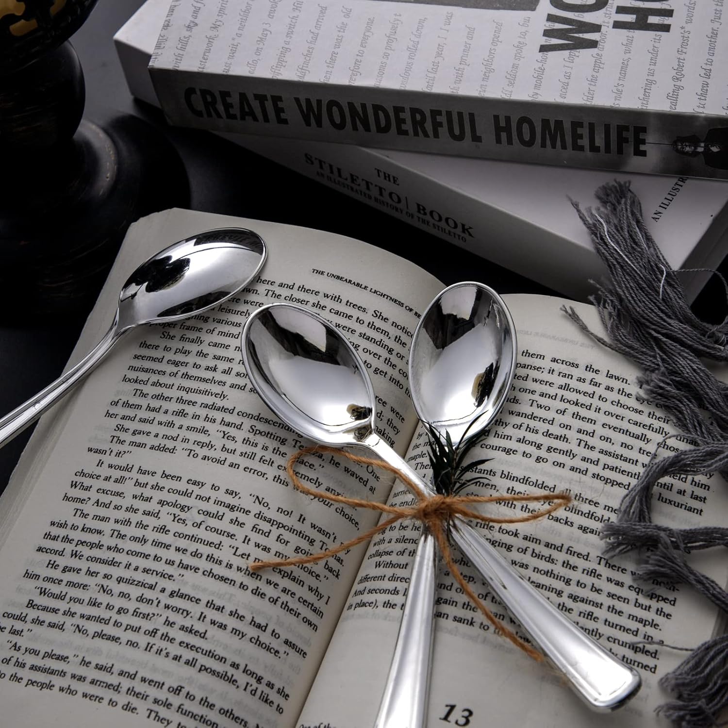 - ELEGANT AND EXTRA HEAVY DUTY : Silver dessert spoons are heavyweight plastic spoons than typical silver plastic cutlery, the beautiful, disposable flatware is the color of polished silver. Their reflective metallic surface creates a lovely shine and look like real silverware. Their silver finish will not chip or flake during use. Not to mention, it’s nice having disposable plastic spoons that fit your hand like normal silverware.