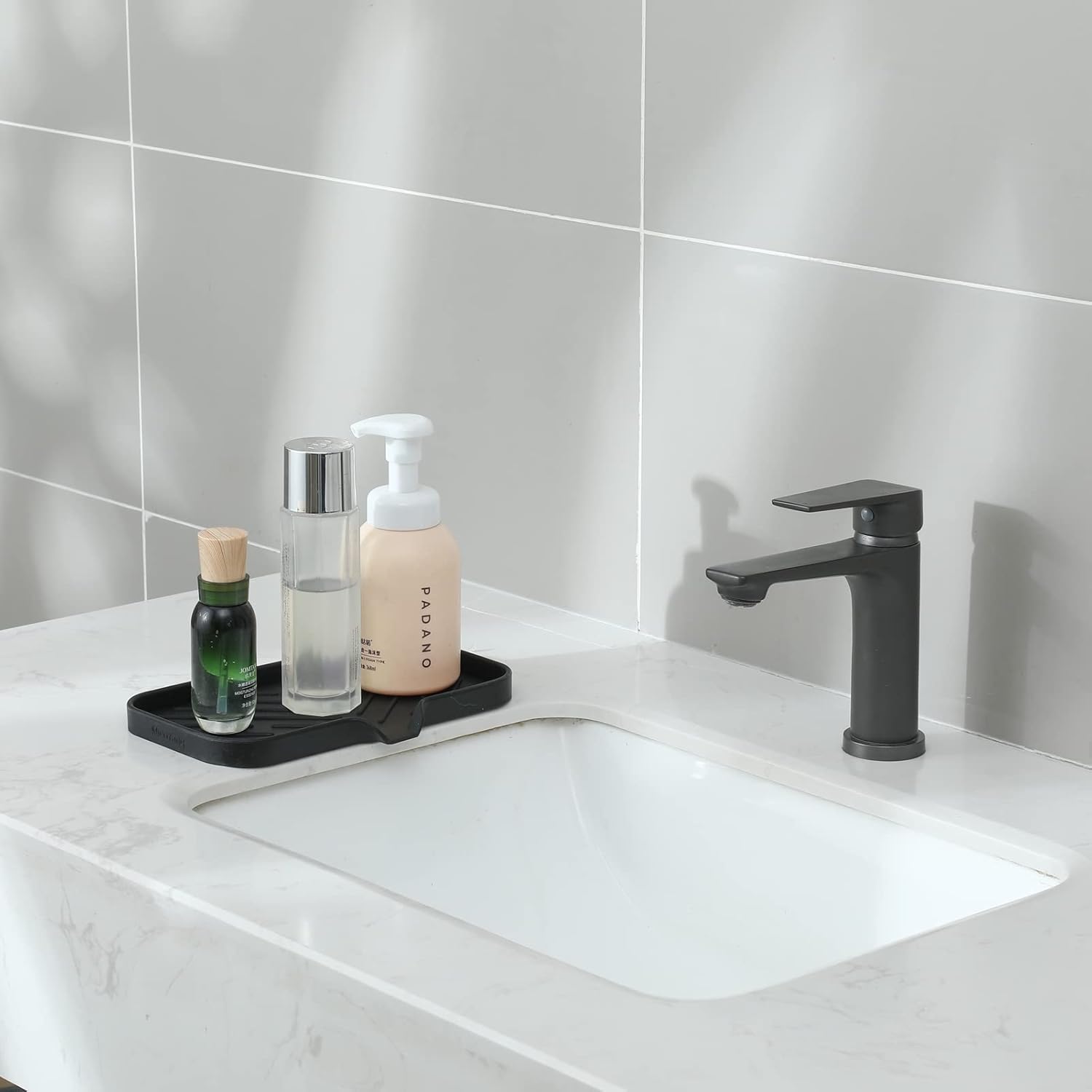 - Food Grade Silicone: The soap dispenser tray is made from high-quality food grade silicone, so it's safe for use in the kitchen or bathroom