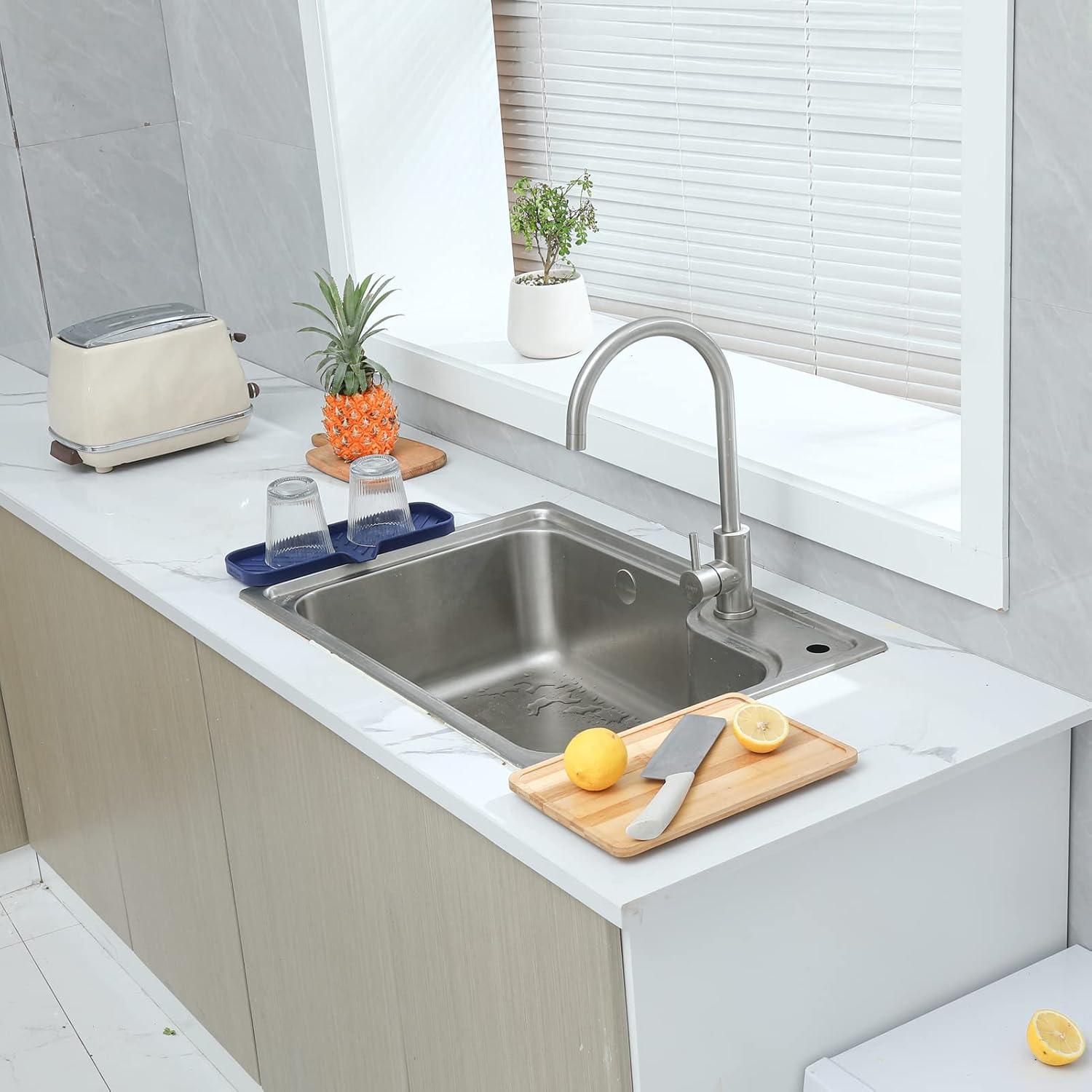 - Food Grade Silicone: The soap dispenser tray is made from high-quality food grade silicone, so it's safe for use in the kitchen or bathroom