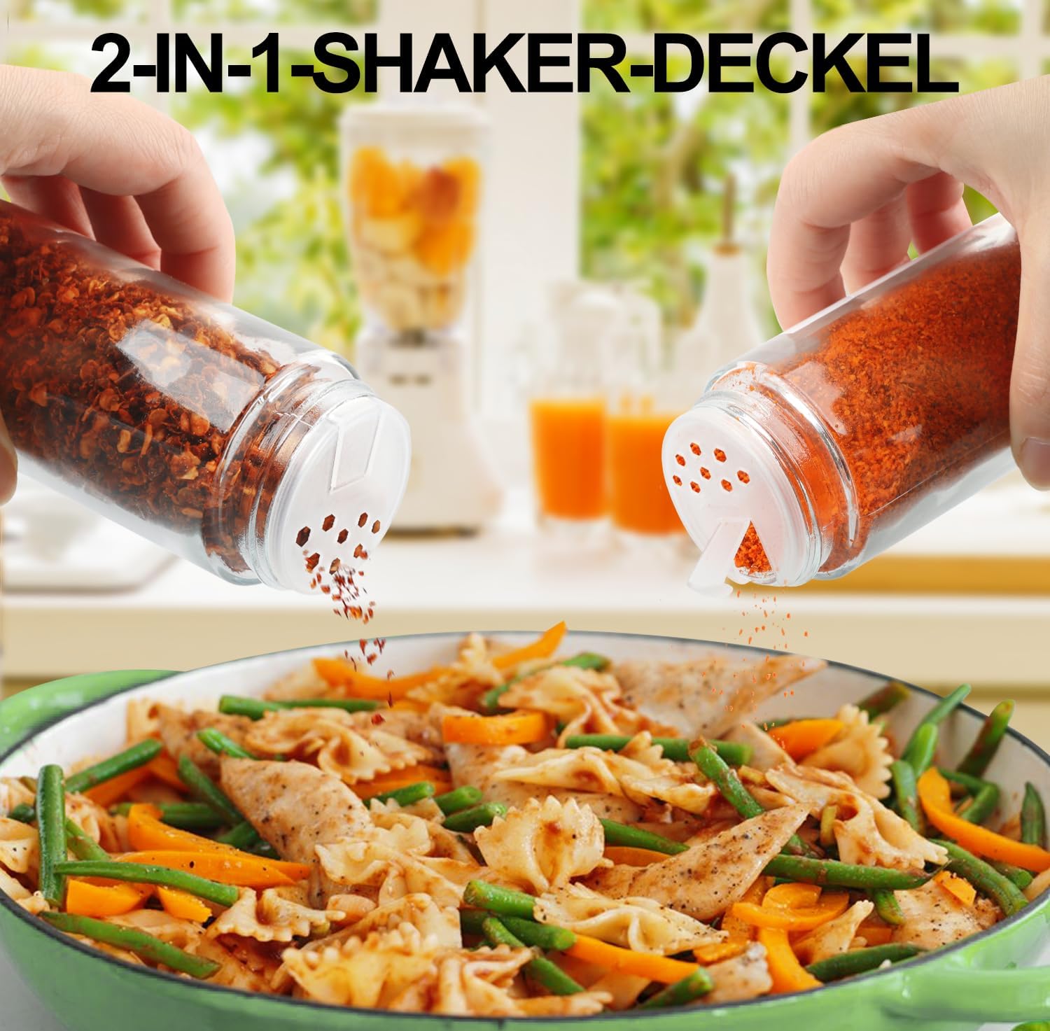 - 【2-In-1 Shaker Lids】Our spice jar set has a special 2-in-1 shaker lid for jars with 2 kinds of sprinkle ports,and on one side and sprinkling powdered spices on the other. The thoughtful opening is designed to meet your daily use needs without changing the lids.In addition,the outer sealed bamboo lid keeps the spices fresh and dry.