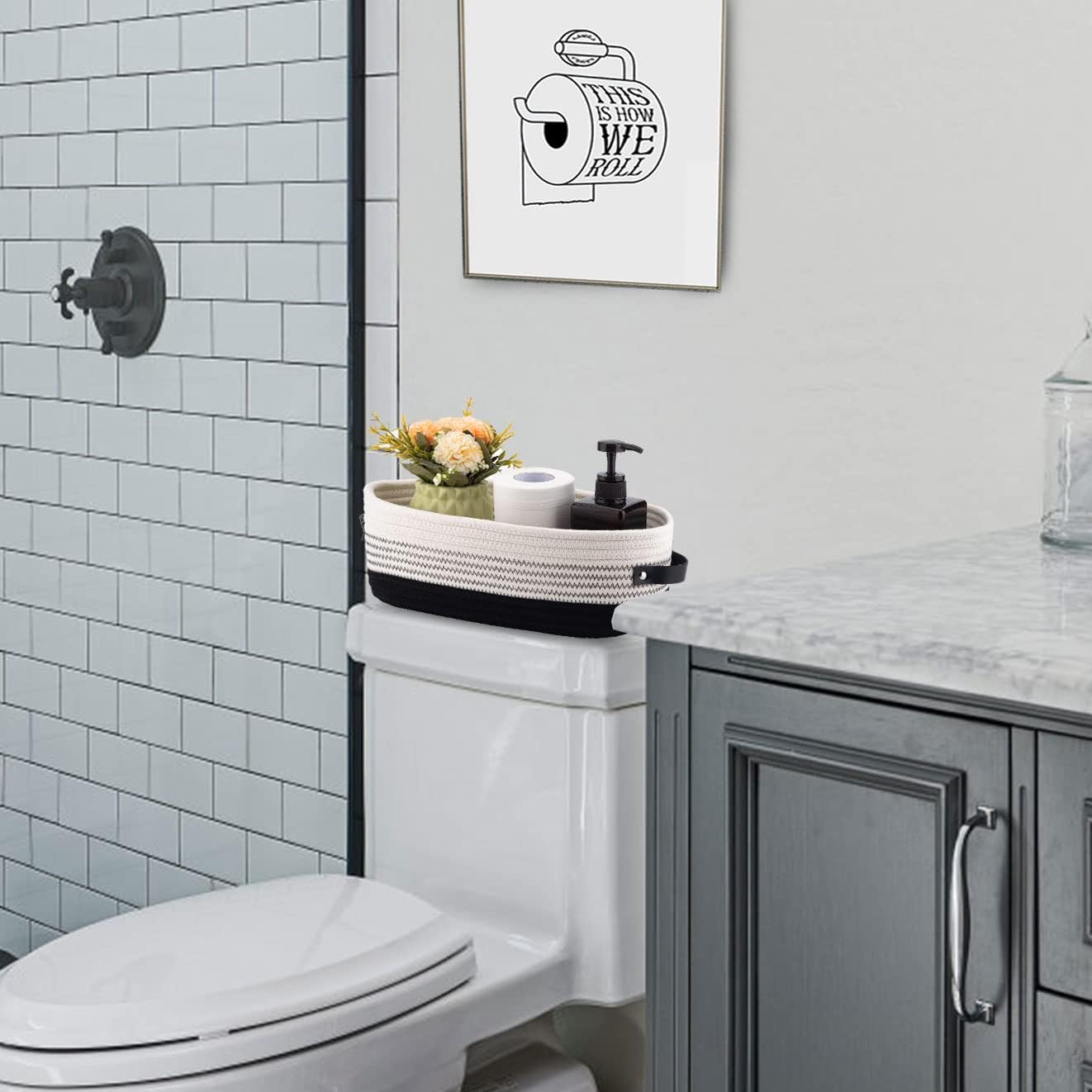Cotton Rope Toilet Basket Bathroom Decor Baskets, Toilet Paper Holder Basket, Farmhouse Home Decor Organizing Small Baskets 13"x5.9"x4" Black