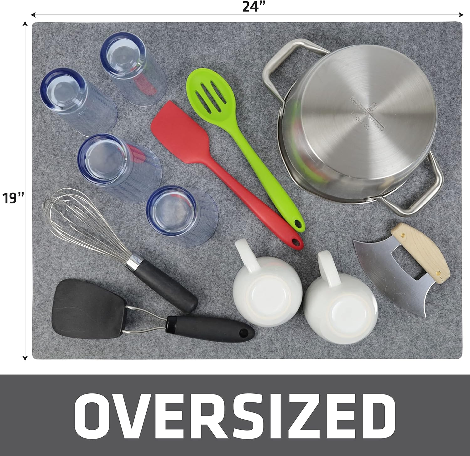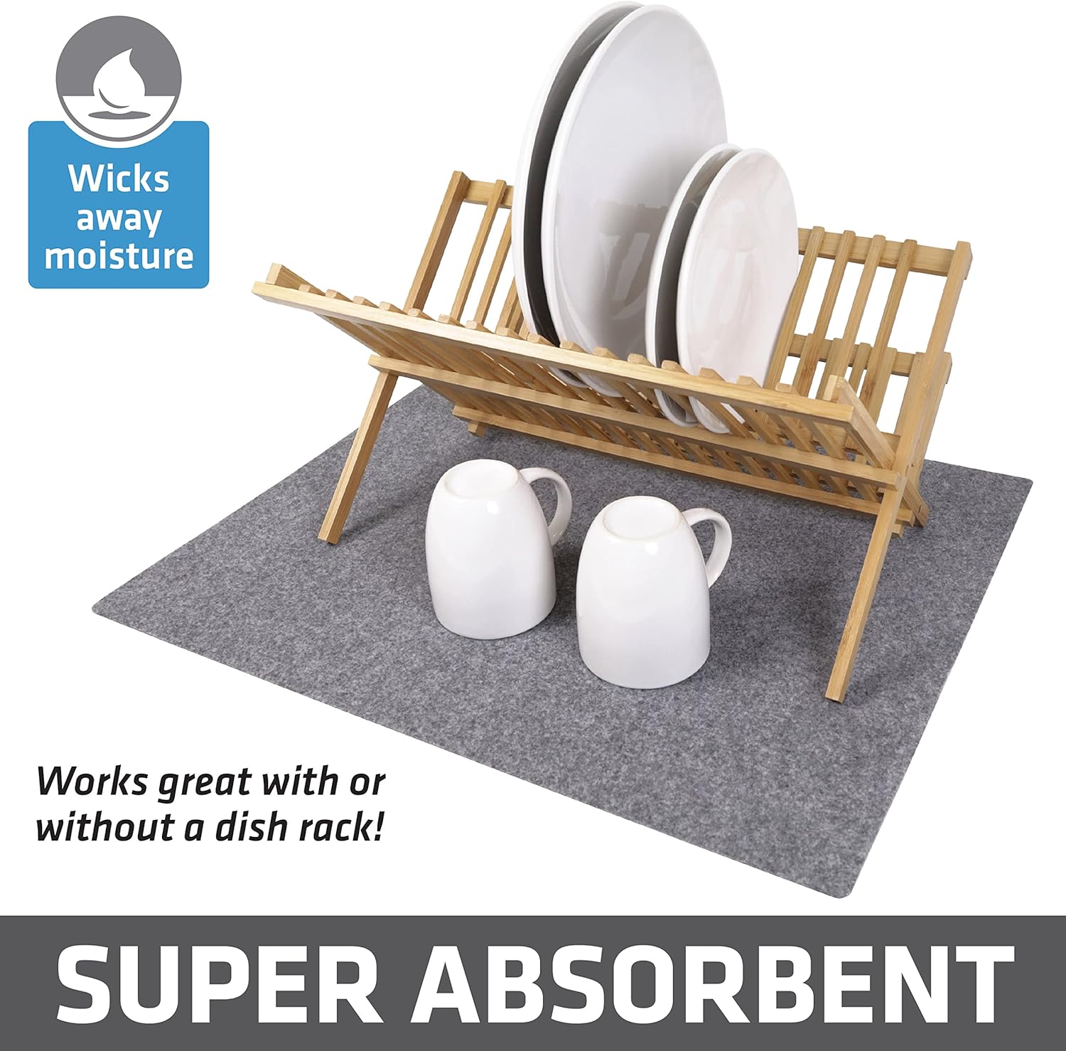 Drymate XL Dish Drying Mat, Oversized (19”x24”), Low-Profile, Super Absorbent, Quick Dry Fabric, Waterproof & Slip-Resistant, for Kitchen Counter, Trimmable, Easy to Clean (USA Made)(Light Grey)