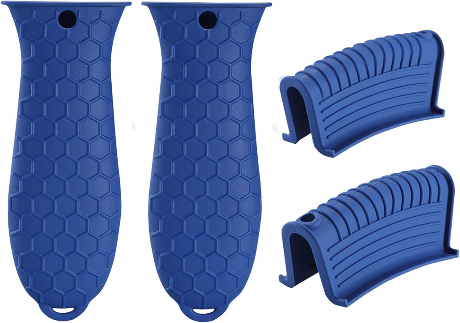 - Non-Slip Design-The Silicone Cast Iron Skillet Handle Holders adopt to honeycomb anti-slip design. Specially designed anti-slip texture and internal silicone ribbing design on the handle for more security when moving heavy hot pans, prevent falling/slip away during use.