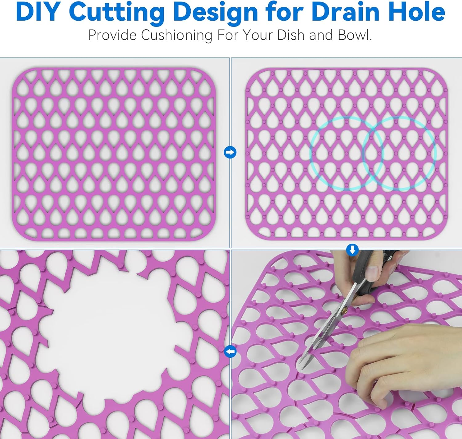 - Center and Rear Drain Hole Design - Unlike traditional faucet mats, you can choose the center or rear opening to make the drain hole of the sink match the drain mat, allowing you to easily remove the drain cover and drain quickly. They can work as a sink protector or a dish drying mat under the sink.