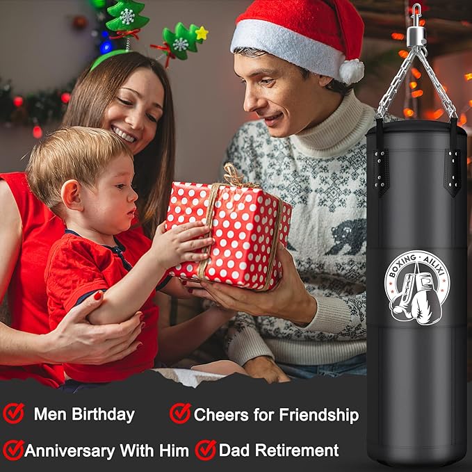 4FT Punching Bag for Adults/Kids, Unfilled Heavy Punching Bag, Boxing Bag Set with Punching Gloves, Wraps, Chain, Ceiling Hook for MMA Kickboxing Boxing Karate Muay Thai Taekwondo