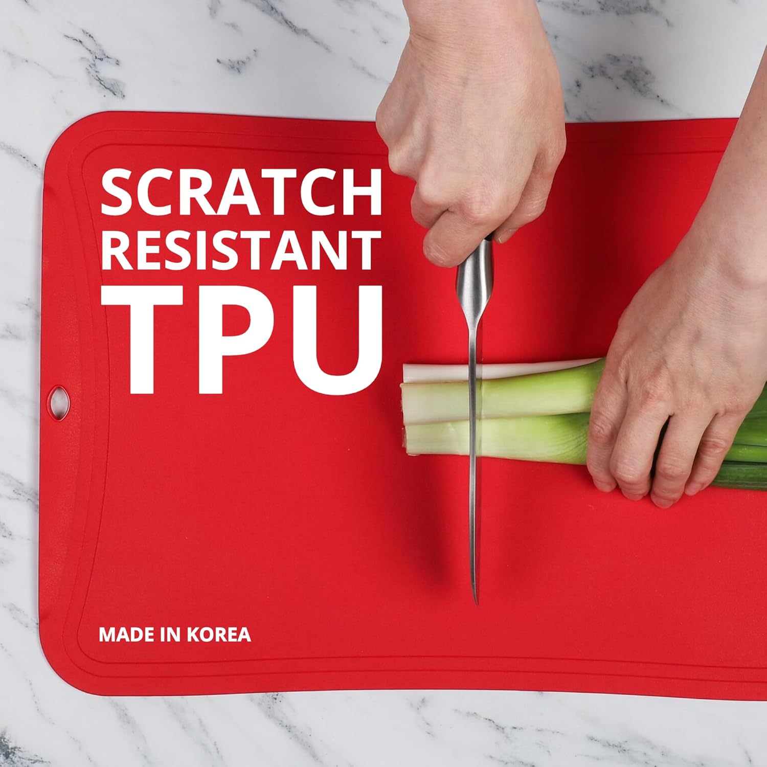 Blue Ginkgo TPU Cutting Mats [Set of 3] – Korean-Made Flexible, Knife-Friendly, Durable Kitchen Cutting Boards (Red, Blue, Yellow)