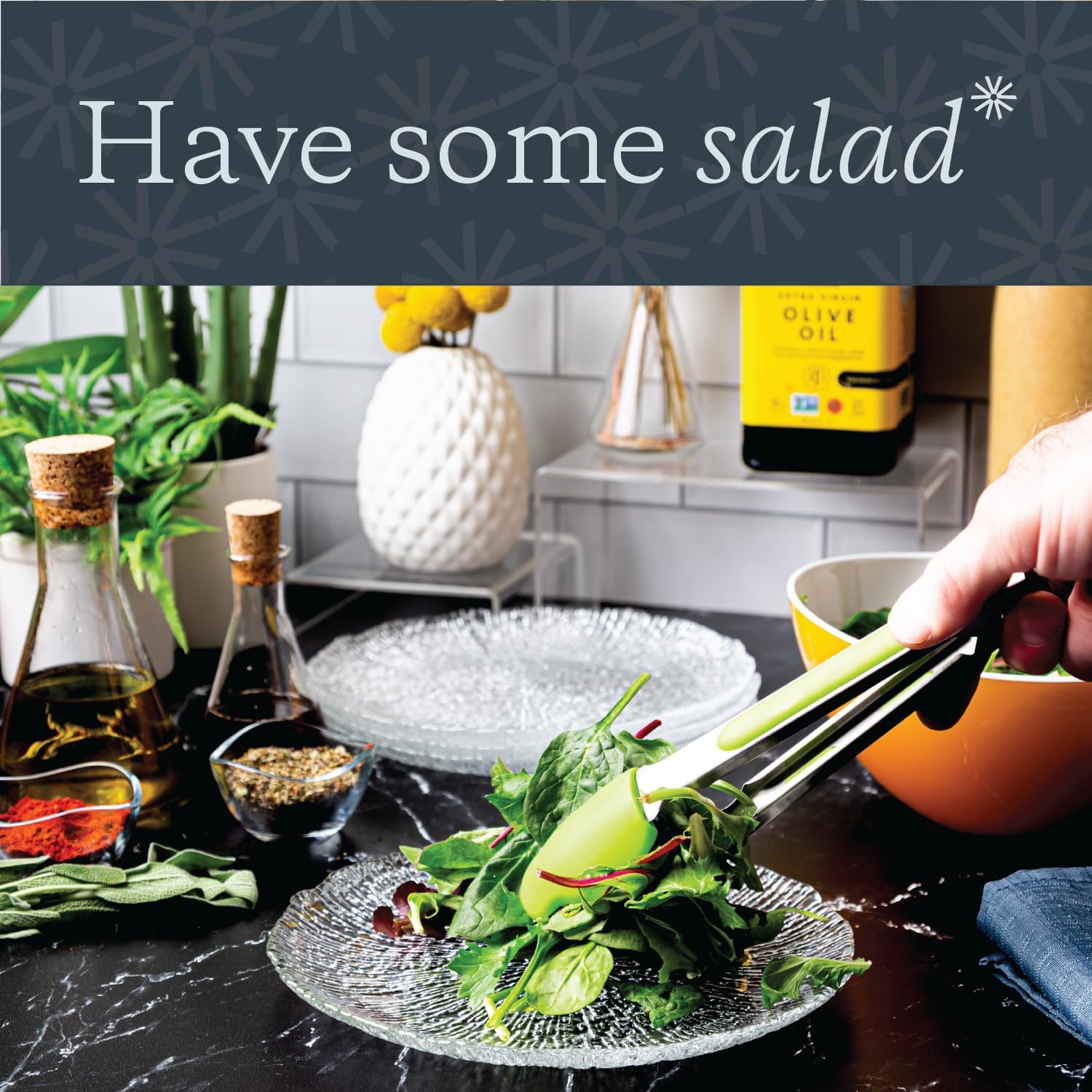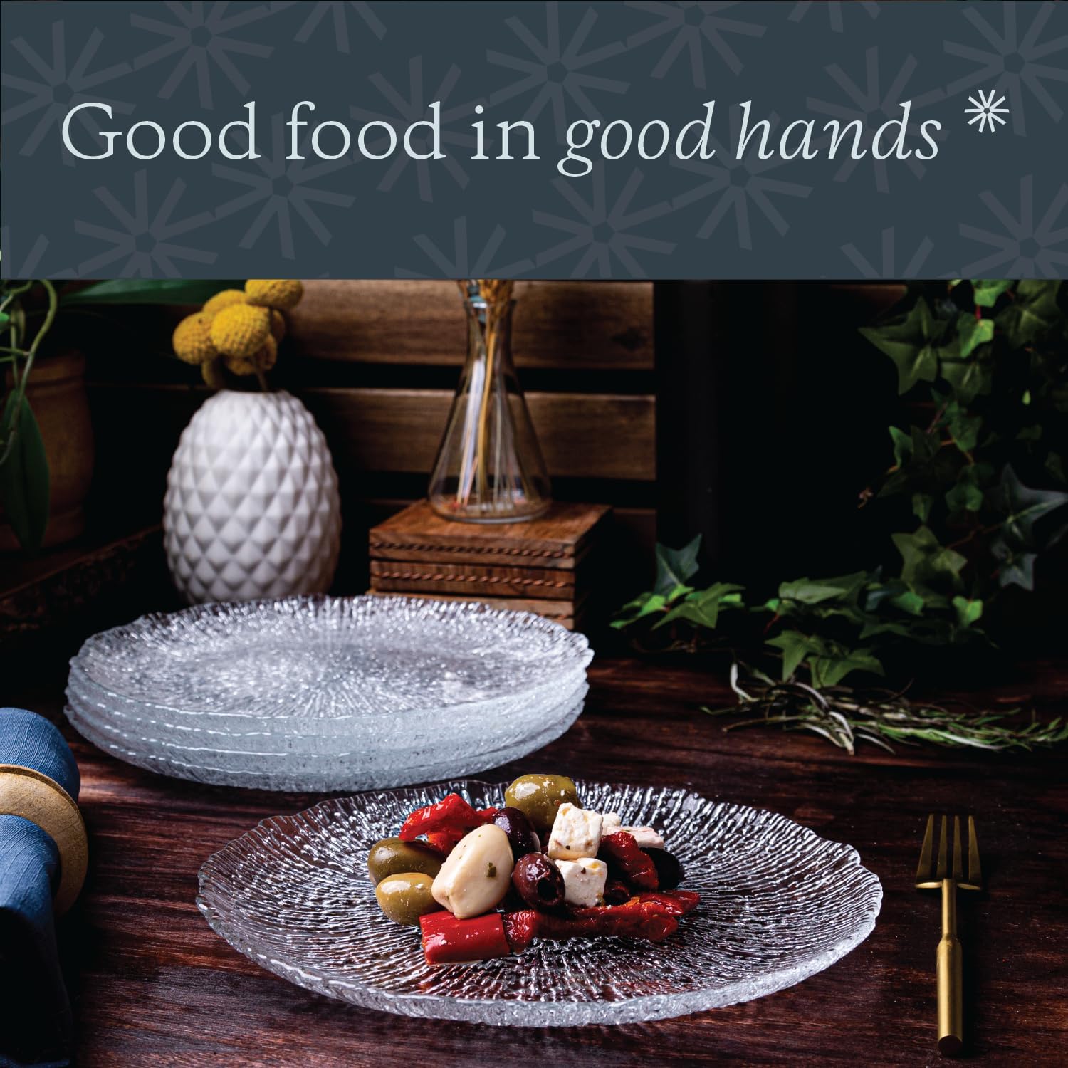 Vikko Salad Plate, Set of 4 Glass Plates, 8.5 Inch Dessert, Salad, Appetizer Plate, Elegant Textured Glass Design, Stackable Plates, Dishwasher Safe