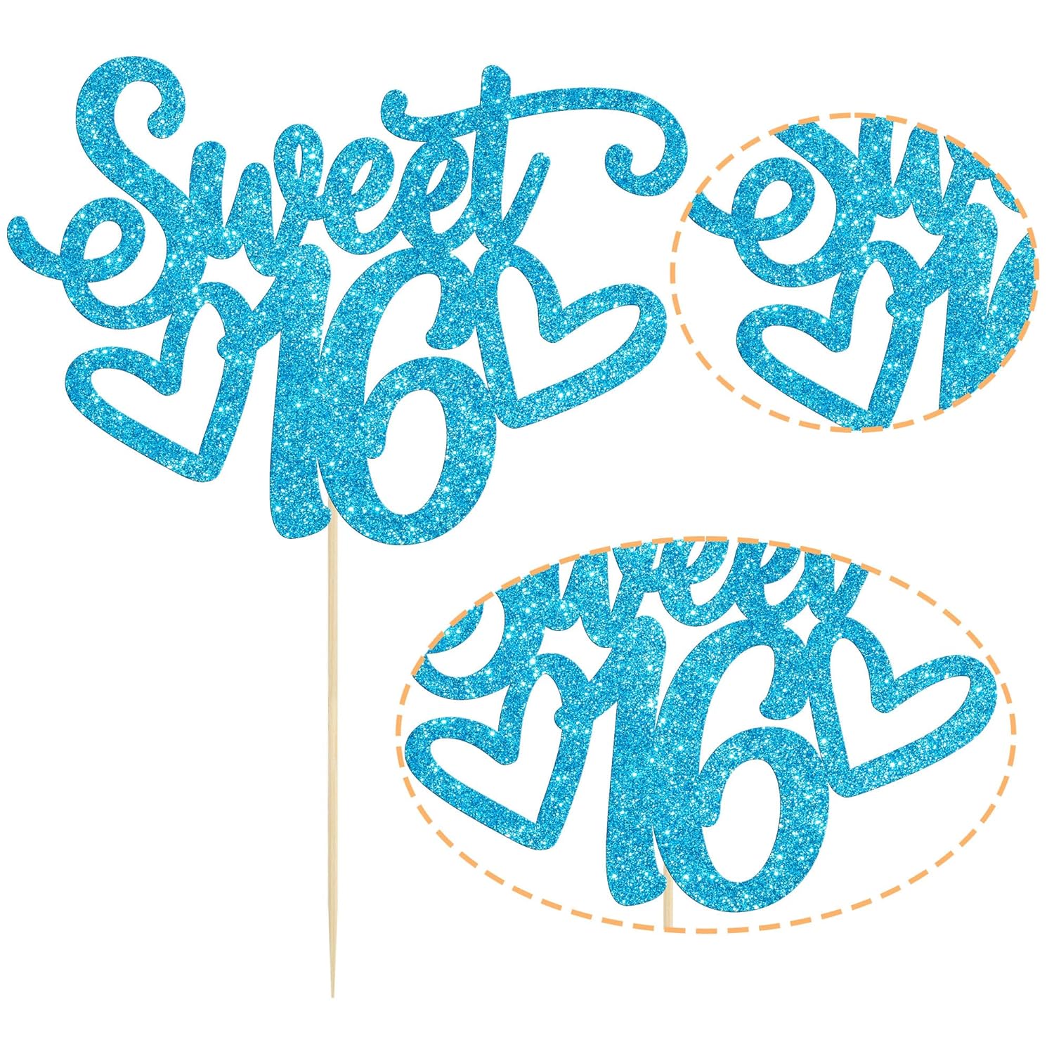 Gyufise 1Pc Sweet Teenager 16 Cake Topper Glitter 16th Birthday Cake Pick for Cheers to 16 Years Old 16th Birthday Party Cake Decorations Supplies Light Blue