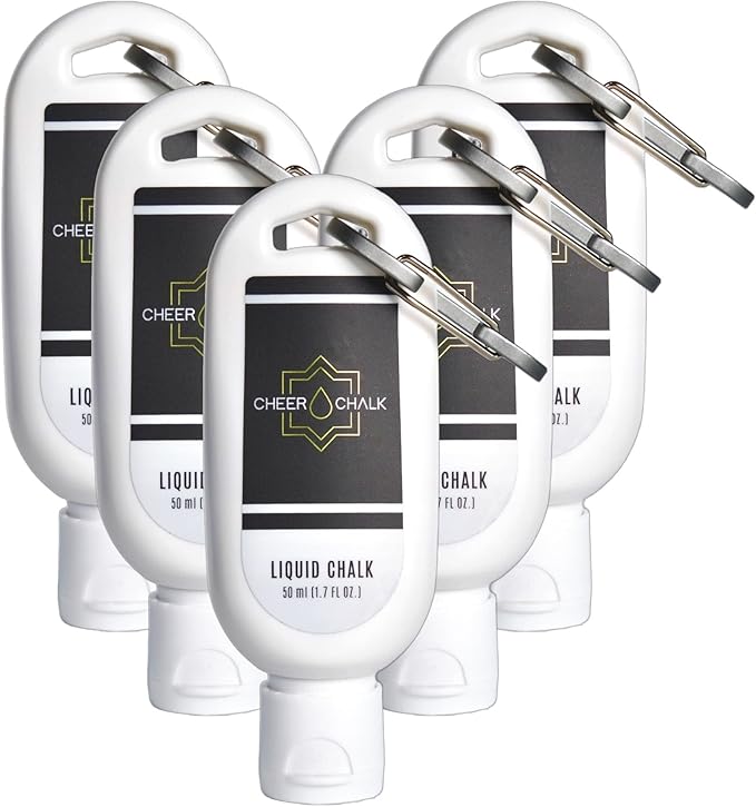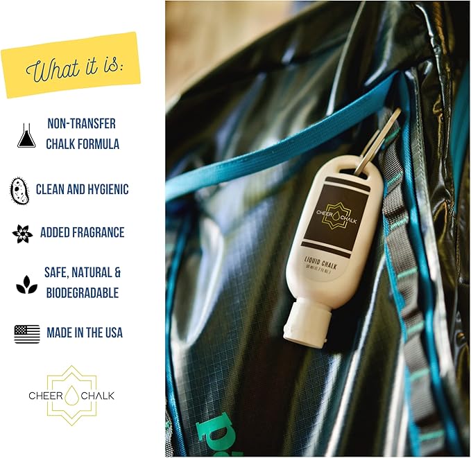 Liquid Chalk - Chalk for Elite Cheerleading - Chalk for Stunting - Chalk for Gymnastics - 50ml Bottle with Carabiner - 50 Practices Per Bottle - Maximum Grip for Safer Stunting