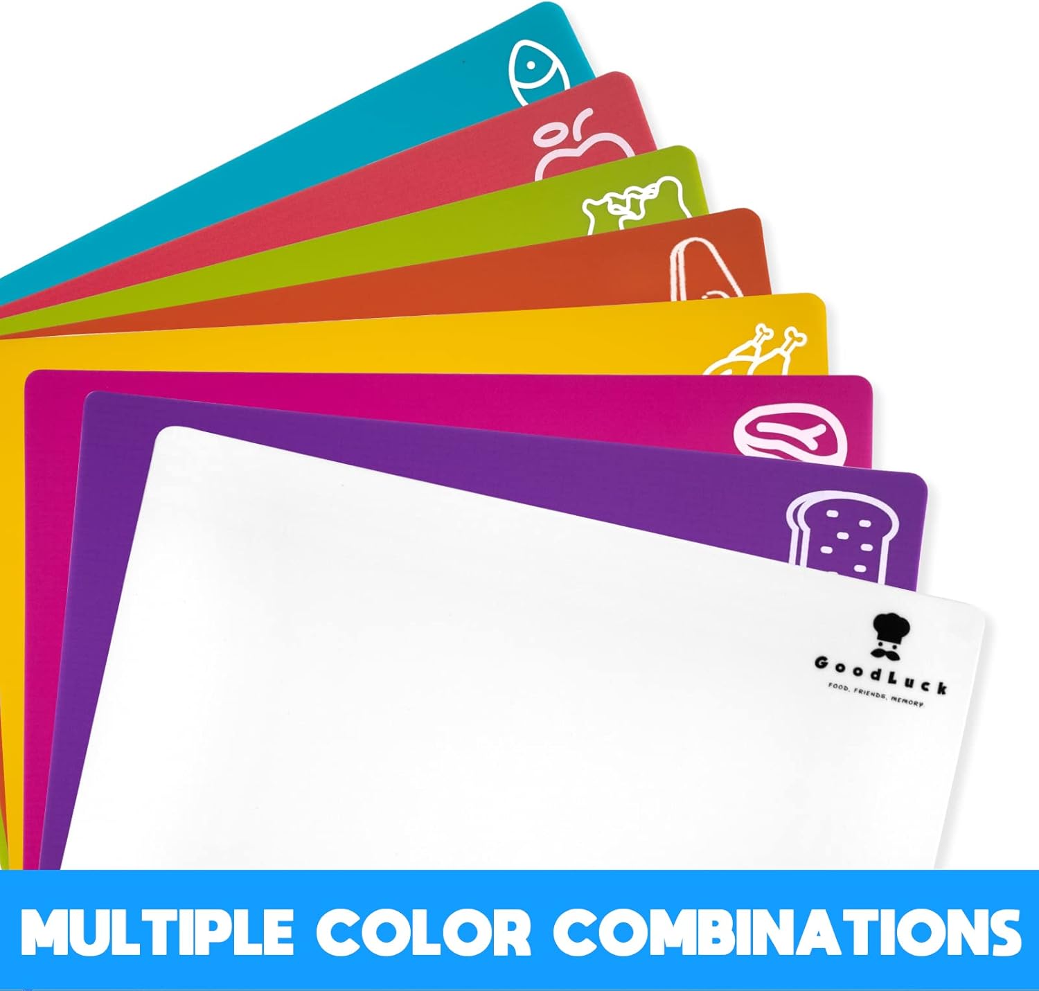 - Multicolor Set - The cutting board set is designed with rainbow colors, each color represents one kind of food. It could avoid food stringing due to mixing chopping board when cutting food.