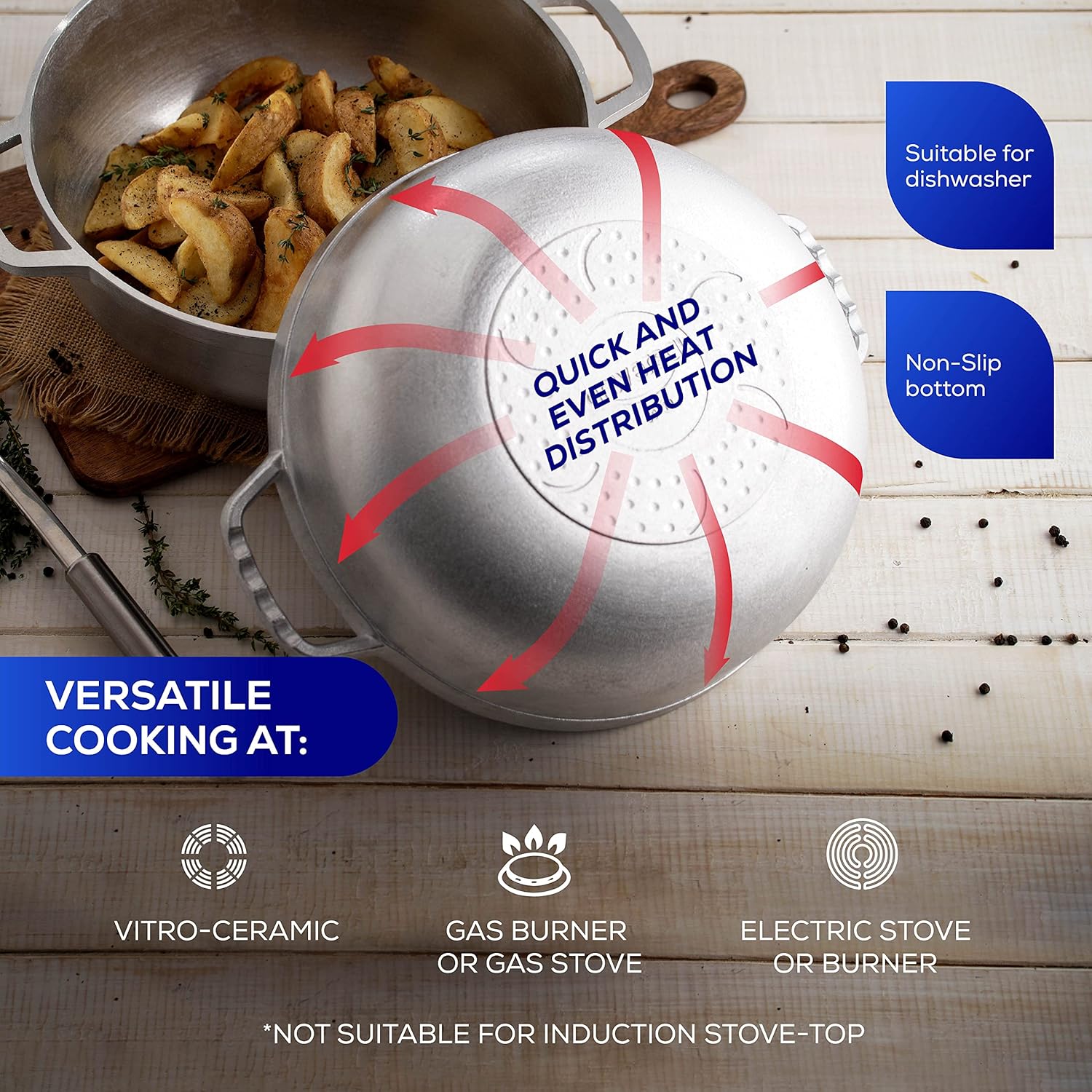 - 🏆 Premium Quality with a 10-Year Warranty: Made in Colombia, this heavy-duty, eco-friendly aluminum pot is built for long-lasting performance. Backed by a 10-year warranty, it guarantees reliable durability for home kitchens.