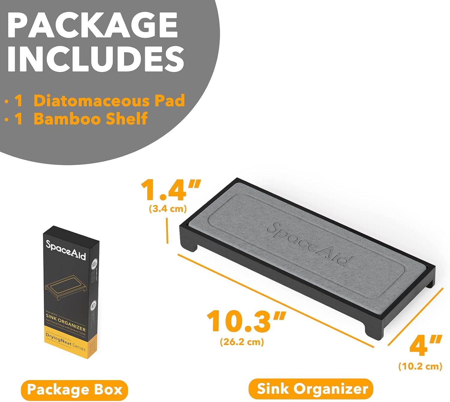 SpaceAid DryingNeat Sink Organizer, Instant Dry Sink Caddy Organizers, Kitchen Sponge Soap Holder Dispenser, Countertop Fast Drying Counter Tray Rack (Bamboo Rack, Black)