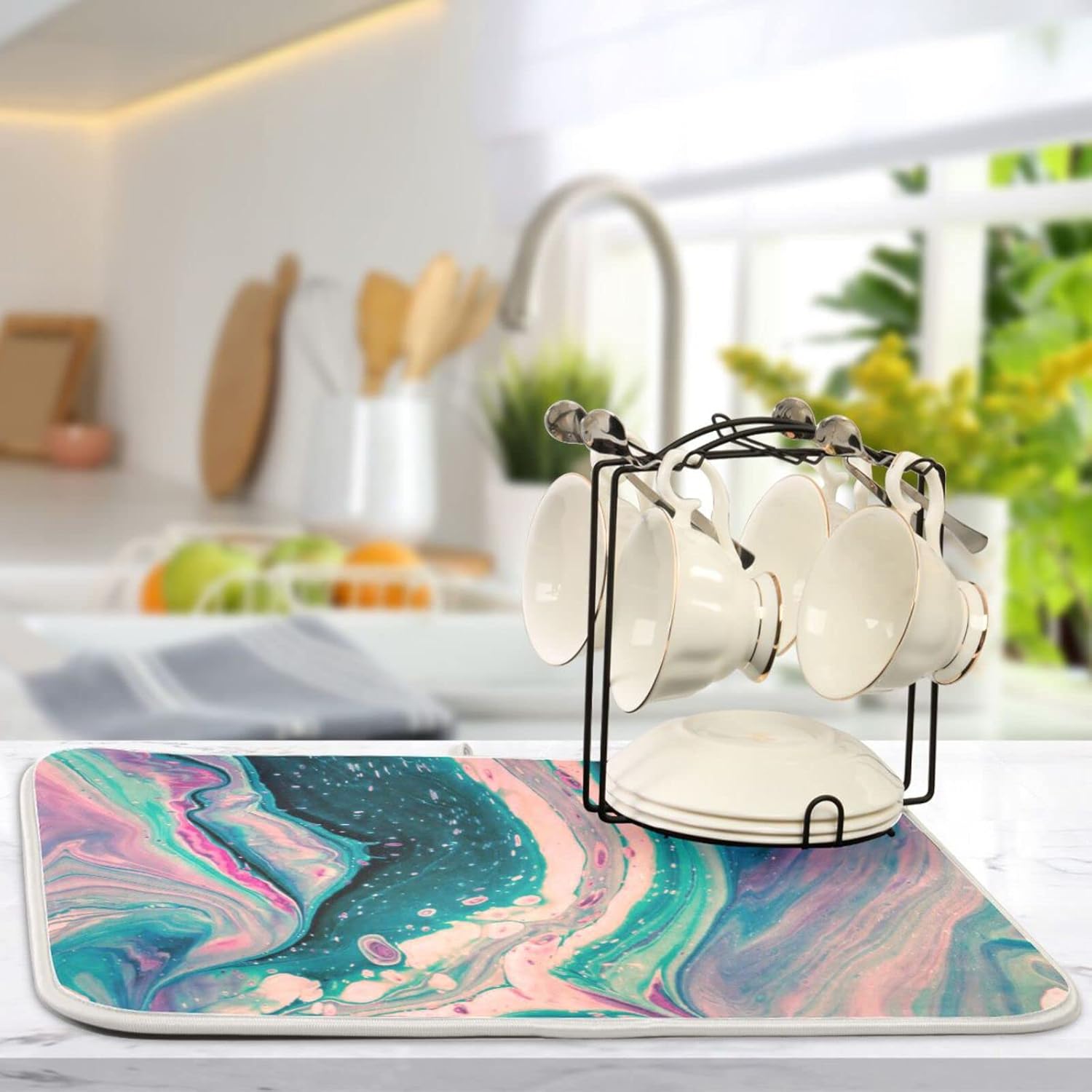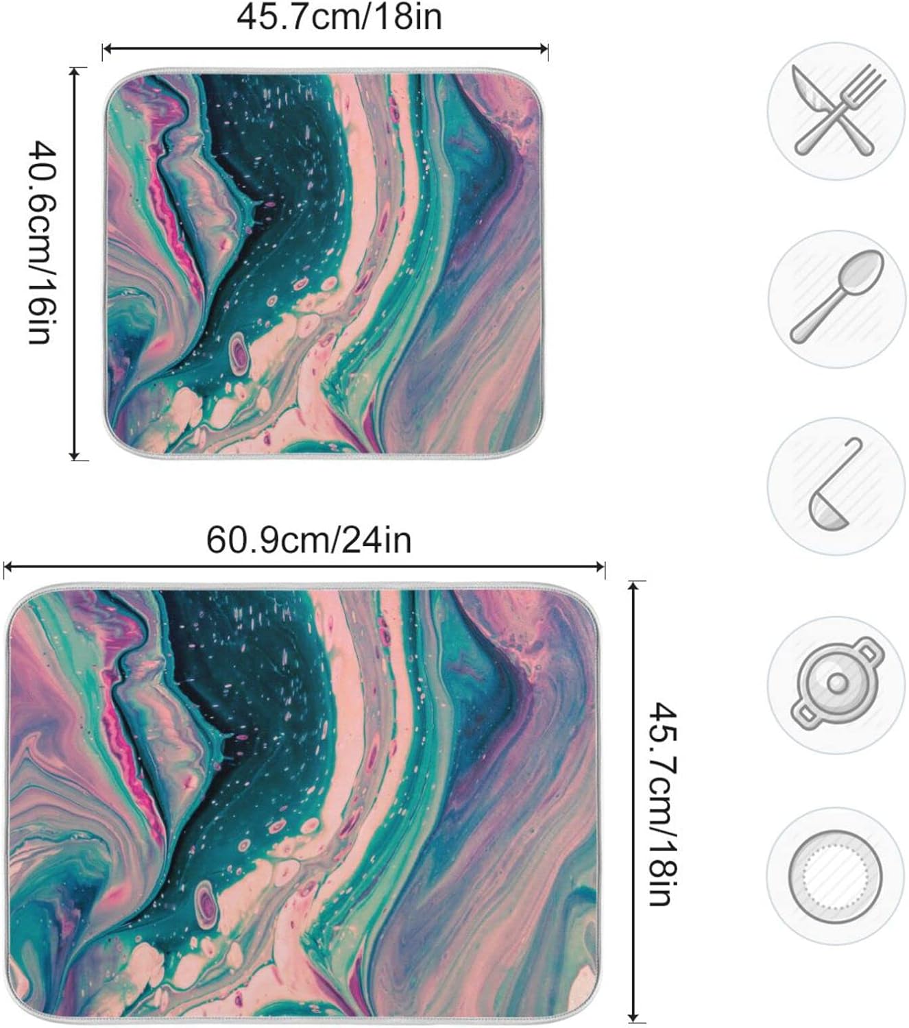 Super Absorbent Dish Drying Mat, Microfiber Fast-Drying Dish Mat, 24" x 18", Kitchen Dish Drying Pad, Marble Pink Green