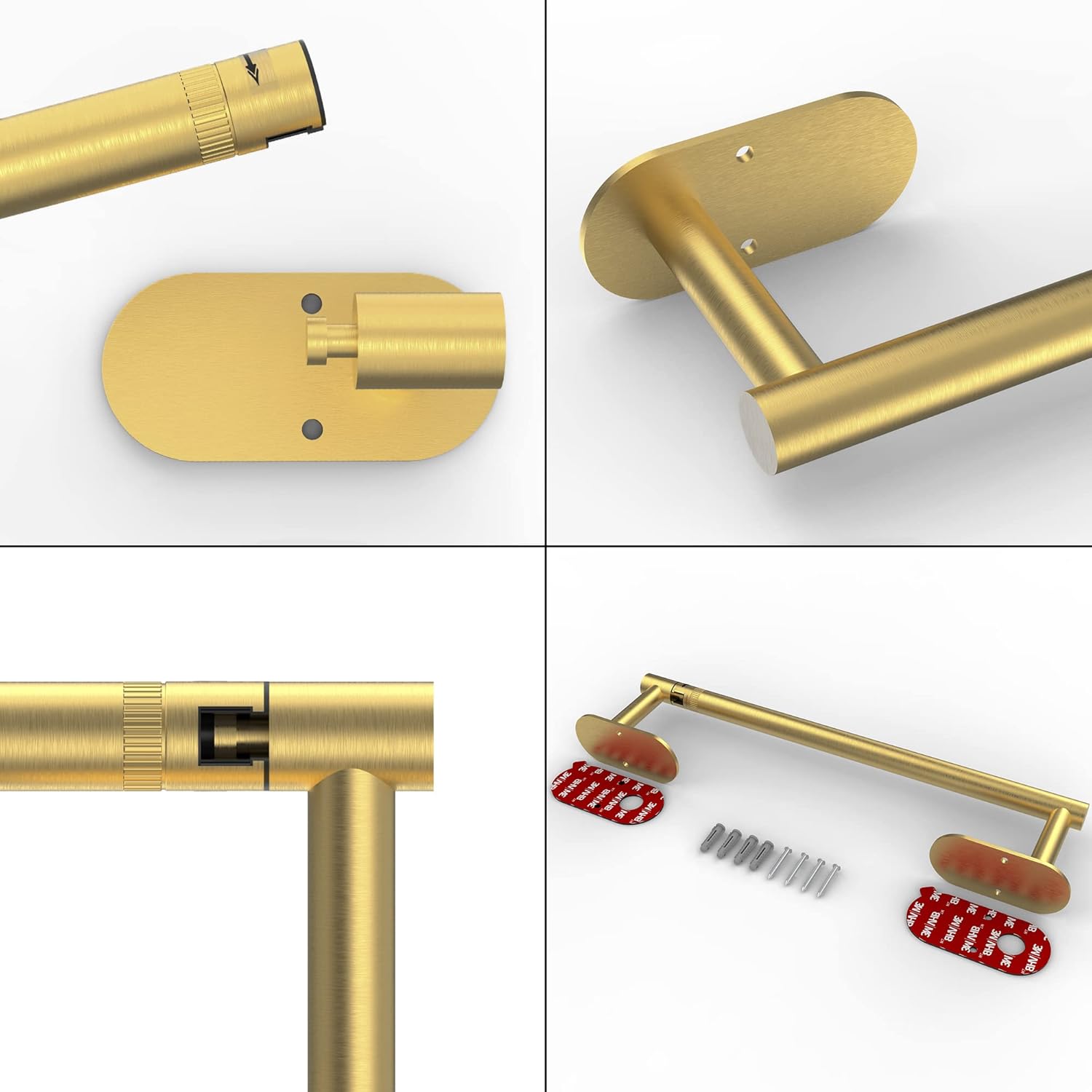 - [Dual Installation] The self-adhesive design of this wall mount paper towel holder makes the product easy to install. High-quality 3M glue firmly fixed the kitchen paper towel holder on the wall. Peel off the protective layer and press self adhesive paper towel holder firmly against the target area for more than 30 seconds. Wait 24 hours to ensure a better bonding effect
