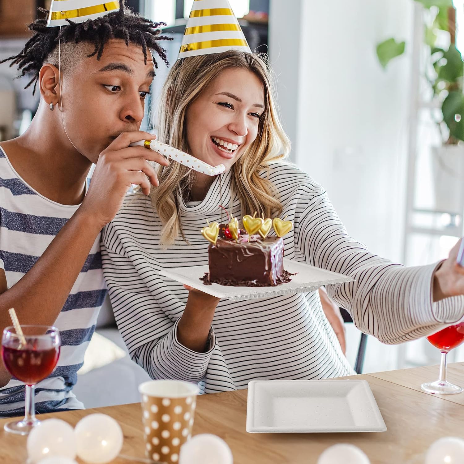 - Daily Event: Whether it's for daily meals, camping trips, picnics, birthdays, or weddings, these disposable square dinner plates are the perfect choice for those who want to reduce their impact on the environment without sacrificing quality or convenience