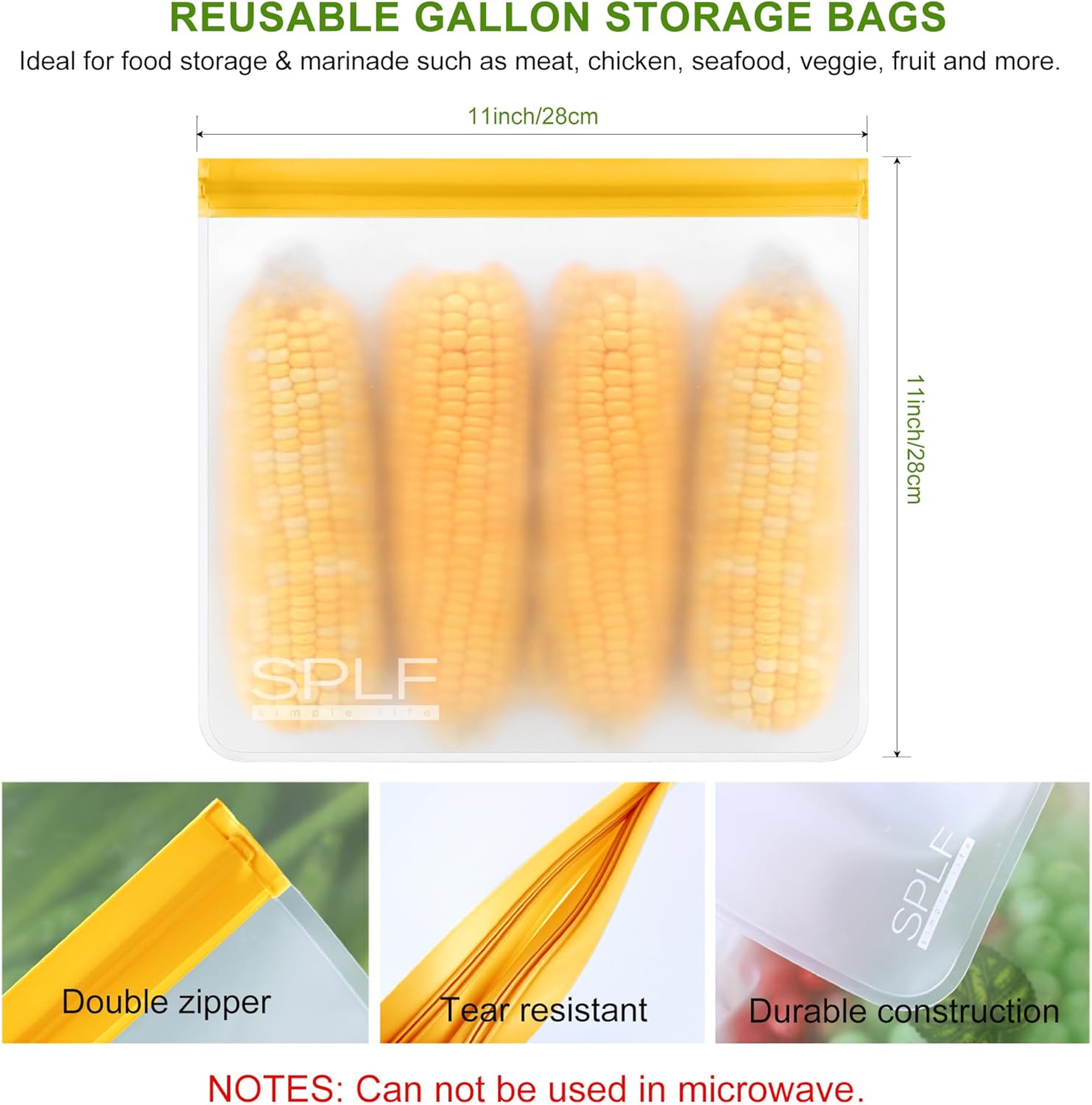 SPLF 6 Pack Reusable Gallon Freezer Bags Dishwasher Safe, BPA Free 1 gallon Leakproof Silicone and Plastic Free Food Storage Bags for Meal Prep, Fruits, Sandwich, Snack, Travel Items - Muticolor