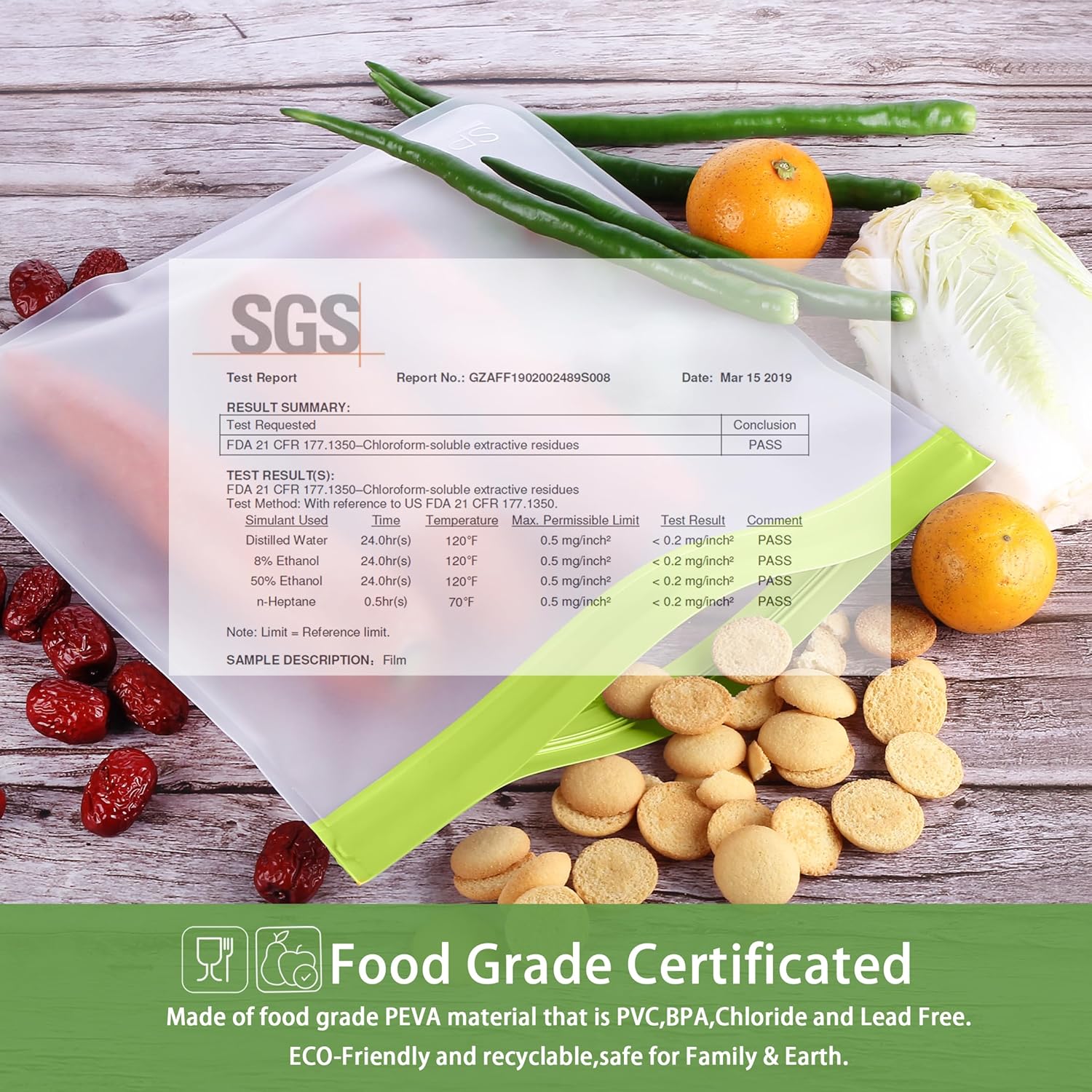 - 【FOOD GRADE MATERIAL】 Choose SPLF brand for TRULY food-grade reusable storage bags. Made of food-grade PEVA material that is PVC, BPA, Chloride and Lead free. Healthy and safe for family and earth.