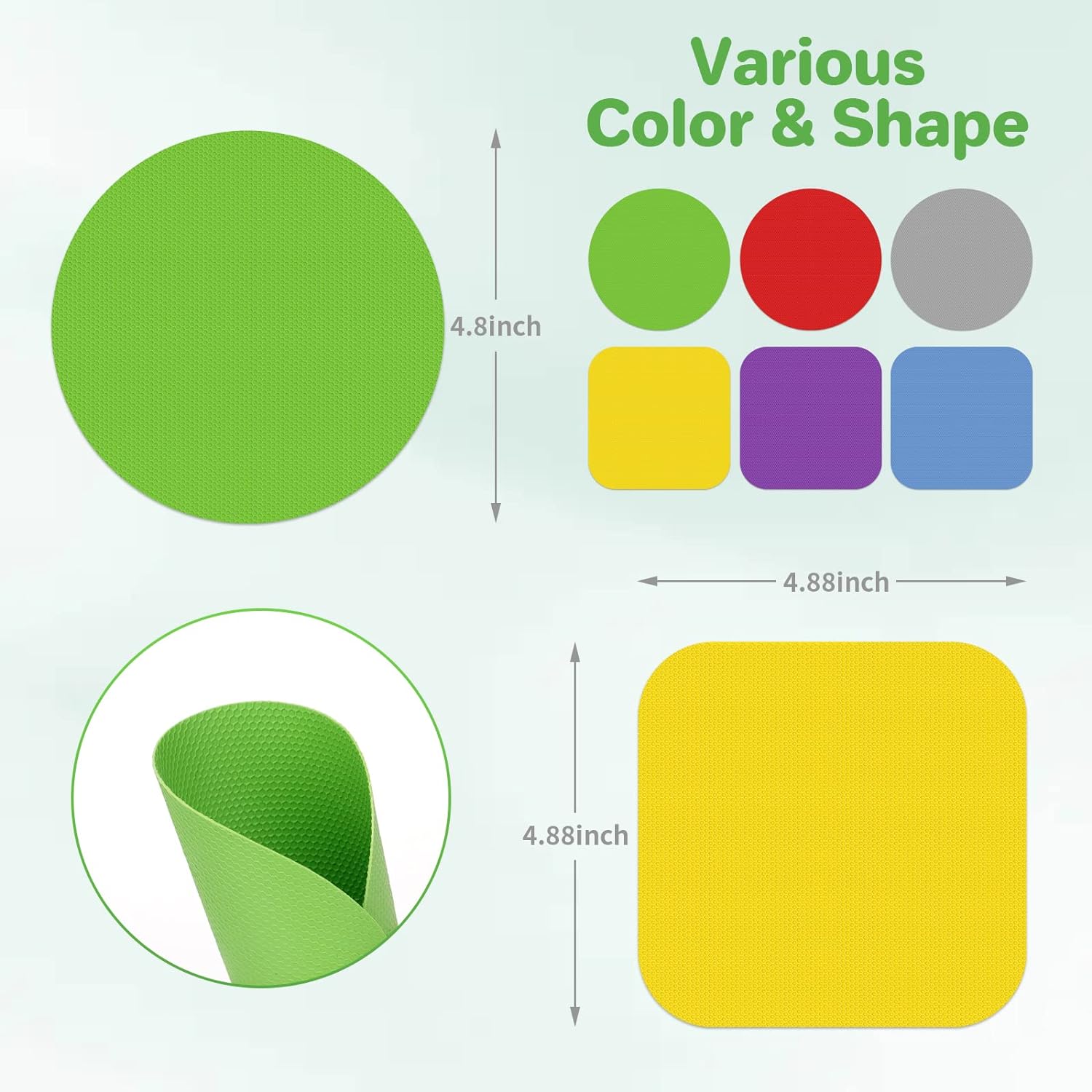 - Package Includes: You will get 6 pieces rubber openers in 2 shapes & 6 colors, including 3 round jar opener gripper pads(green, gray, red) and 3 square jar opener gripper pads(light blue, purple, yellow).