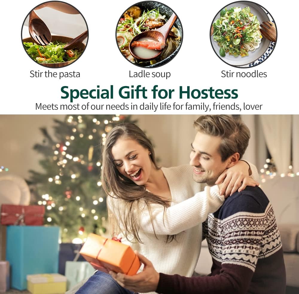 - 【Package Includes】- Wood salad servers includes 1pcs 10.2in salad spoon and 1pcs 10.2in salad forks, they can be used for mixing, tossing and cooking. Hanging hole can makes storage more easily.