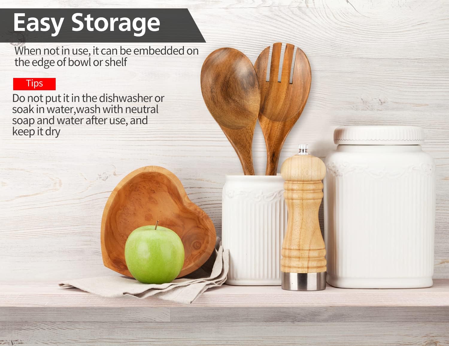 - 【Cleaning & Storage】- You need to wash the salad server manually with neutral soap and warm water, dry it thoroughly after each use, store it in a well-ventilated place and keep them away from heat and sunlight. NOTE: Please DO NOT put into dishwasher, microwave, freezer or oven.