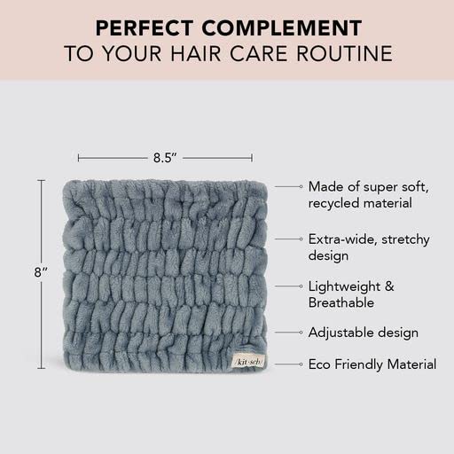 Kitsch Spa Headband for Women – Soft, Stretchy Skincare Headband for Washing Face, Makeup & Facials | Extra-Wide, Non-Slip for Beauty Routines & Self-Care - Misty Blue
